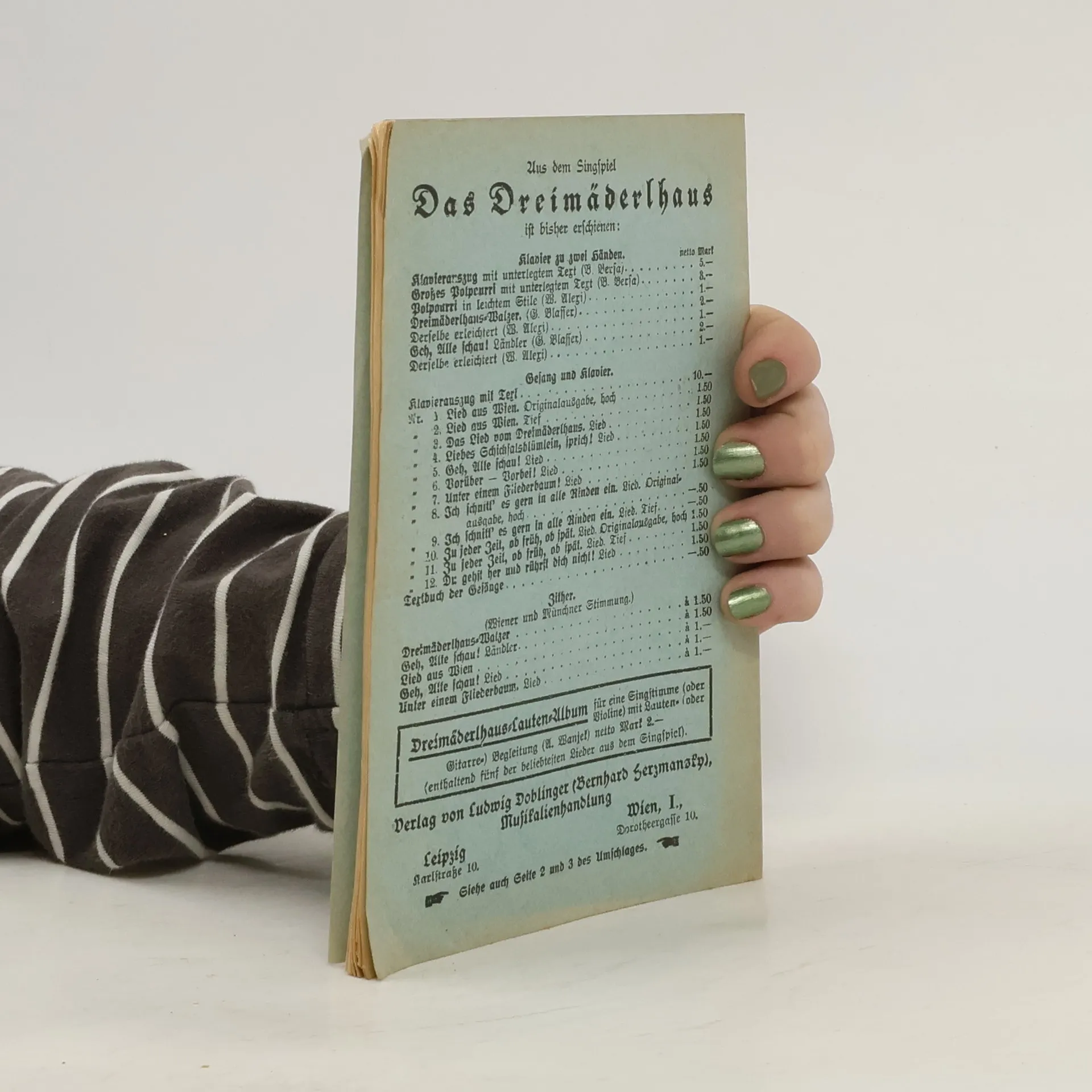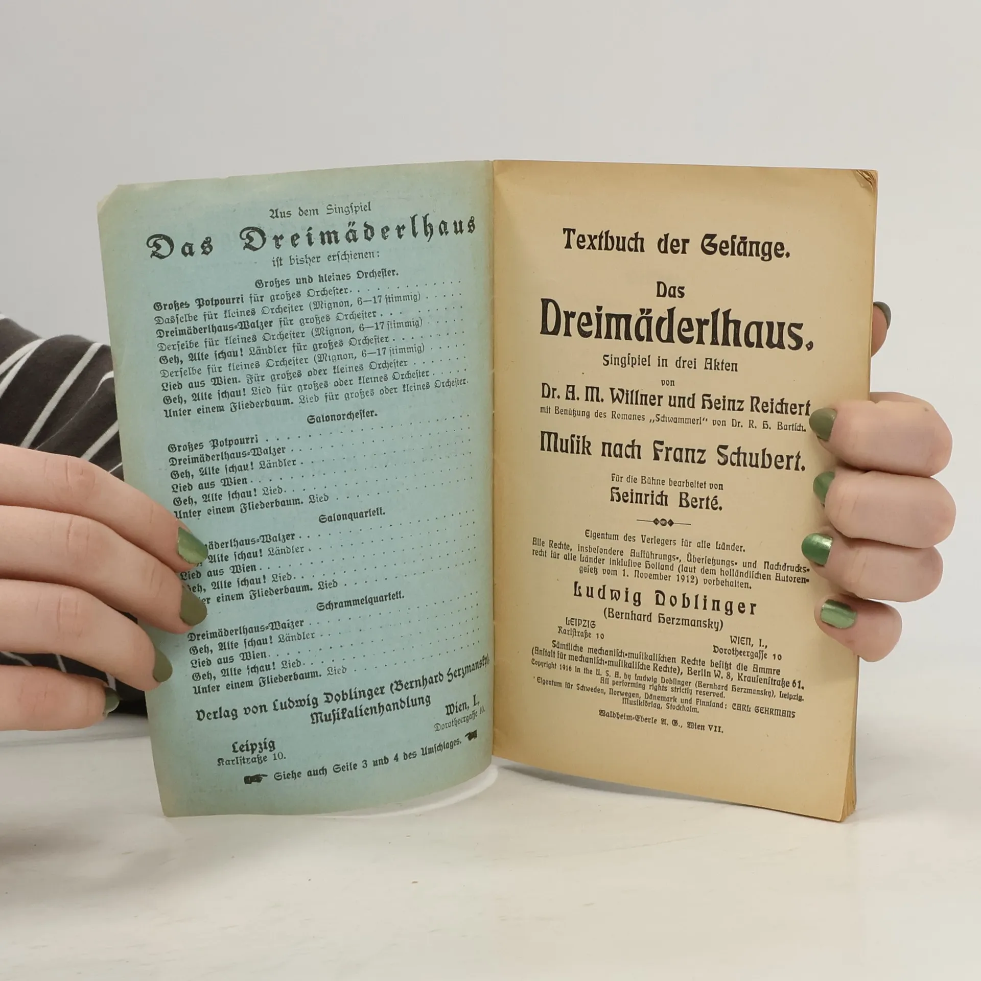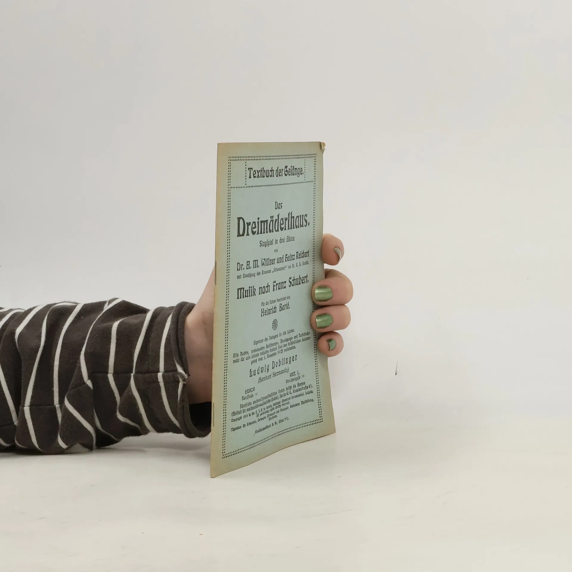 Textbuch der Gesänge. Das Dreimäderlhaus Singspiel in drei Akten, Franz Schubert, A.M. Willner , Heinz Reichert