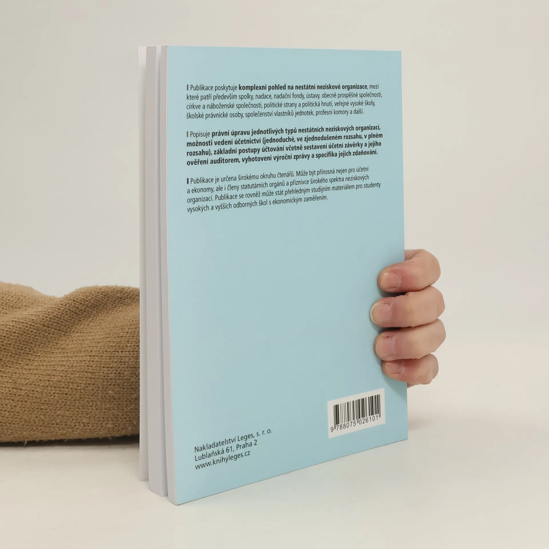 Publikace poskytuje komplexní pohled na nestátní neziskové organizace, mezi které patří především spolky, nadace, nadační fondy, ústavy, obecně prospěšné společnosti, církve a náboženské společnosti, politické strany a politická hnutí, veřejné vysoké školy, školské právnické osoby, společenství vlastníků jednotek, profesní komory a další.Popisuje právní úpravu jednotlivých typů nestátních neziskových organizací, možnosti vedení účetnictví (jednoduché, ve zjednodušeném rozsahu, v plném rozsahu), základní postupy účtování včetně sestavení účetní závěrky a jejího ověření auditorem, vyhotovení výroční zprávy a specifika jejich zdaňování.Publikace je určena širokému okruhu čtenářů. Může být přínosná nejen pro účetní a ekonomy, ale i členy statutárních orgánů a příznivce širokého spektra neziskových organizací. Publikace se rovněž může stát přehledným studijním materiálem pro studenty vysokých a vyšších odborných škol s ekonomickým zaměřením.