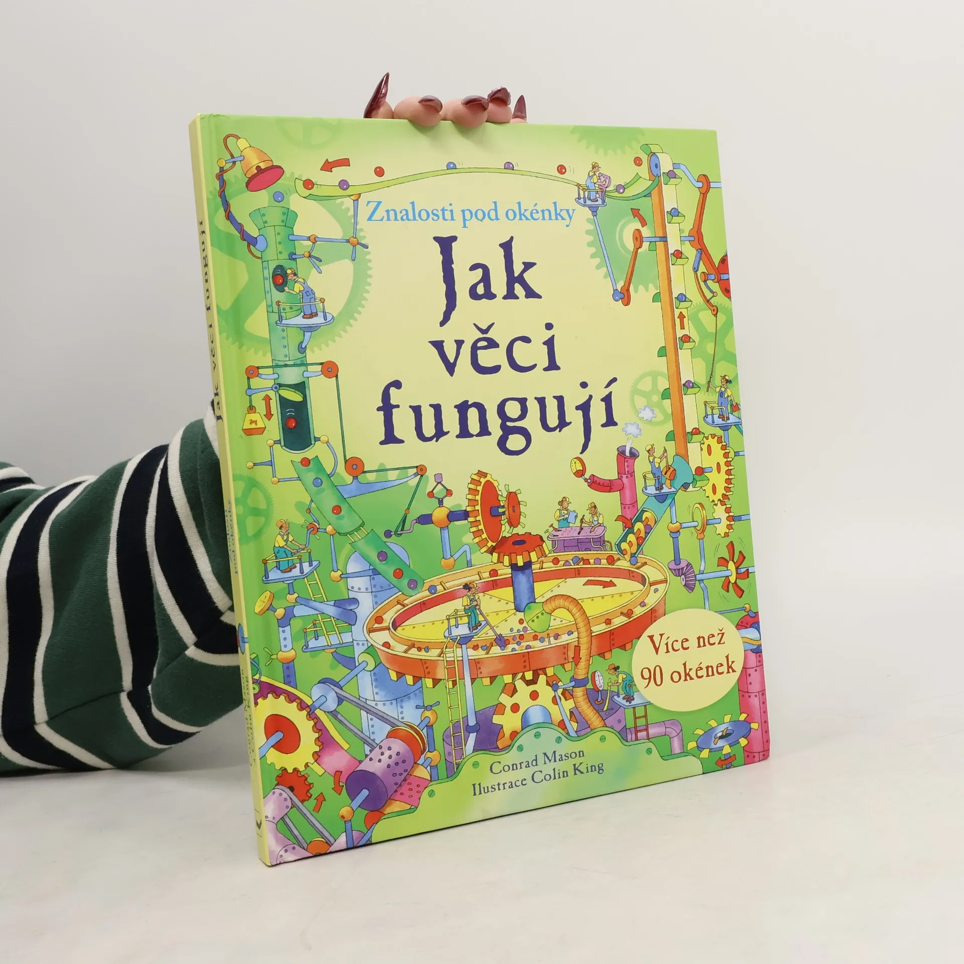 Zamysleli jste se někdy nad tím, jak protéká voda splachovacím zařízením, případně co se děje uvnitř zářivky – proč vlastně svítí? Zajímá vás, jak bagr nabírá hlínu, proč lodě plují nebo proč se letadla udrží ve vzduchu? Nadzdvihněte okénka na stránkách této knihy a podívejte se do nich, jak věci fungují – a to od nejběžnějších předmětů až po mohutné stroje. V knížce jich naleznete více než 90.