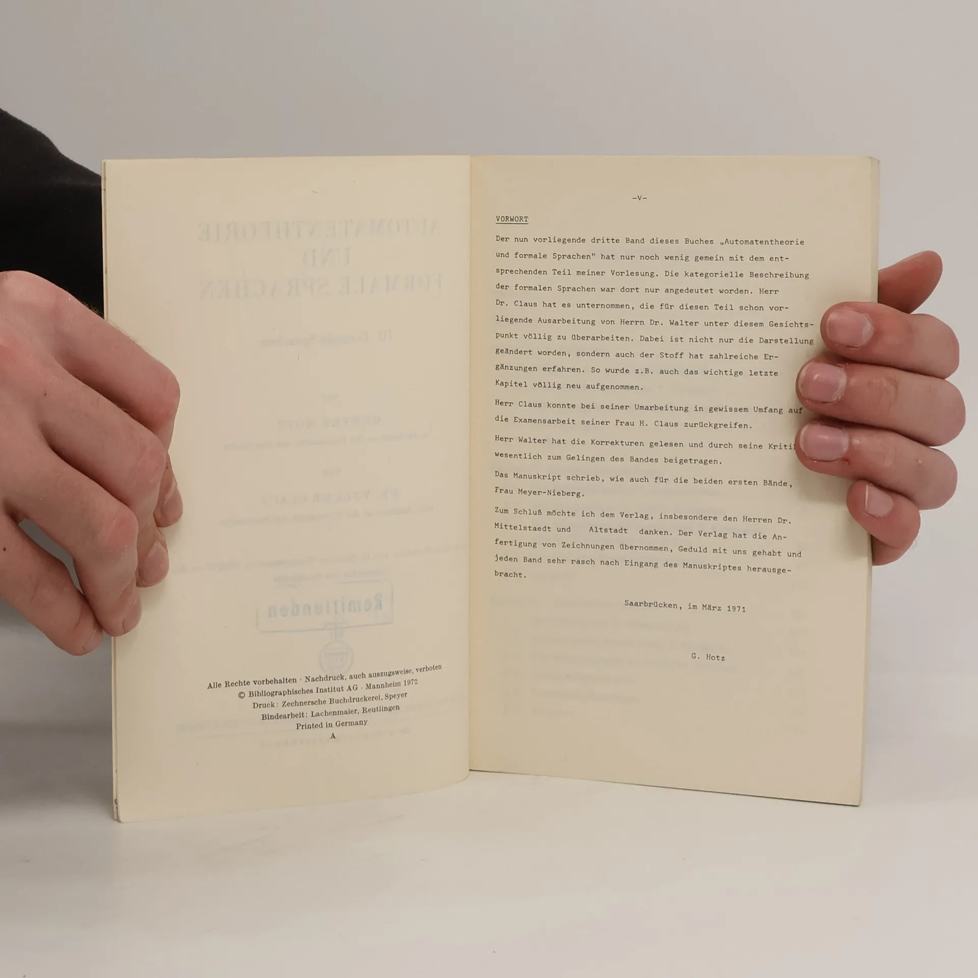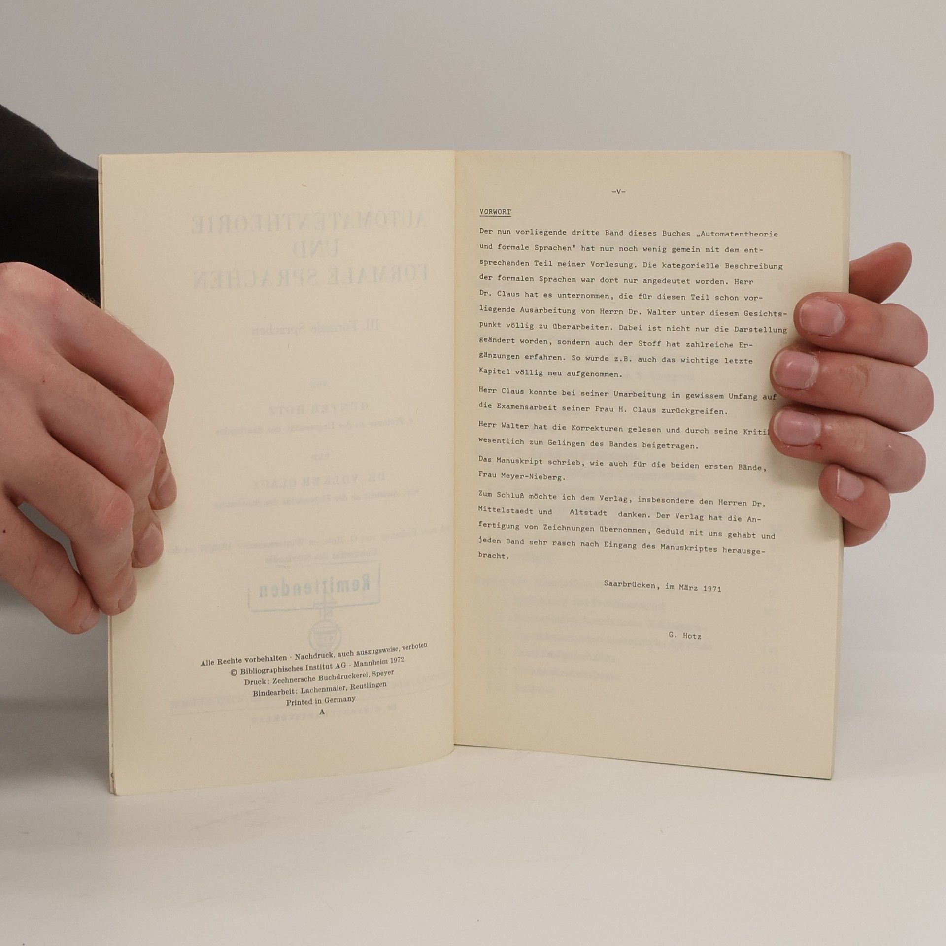 Automatentheorie und formale Sprachen III, Günter Hotz, Claus-Volker Klenke