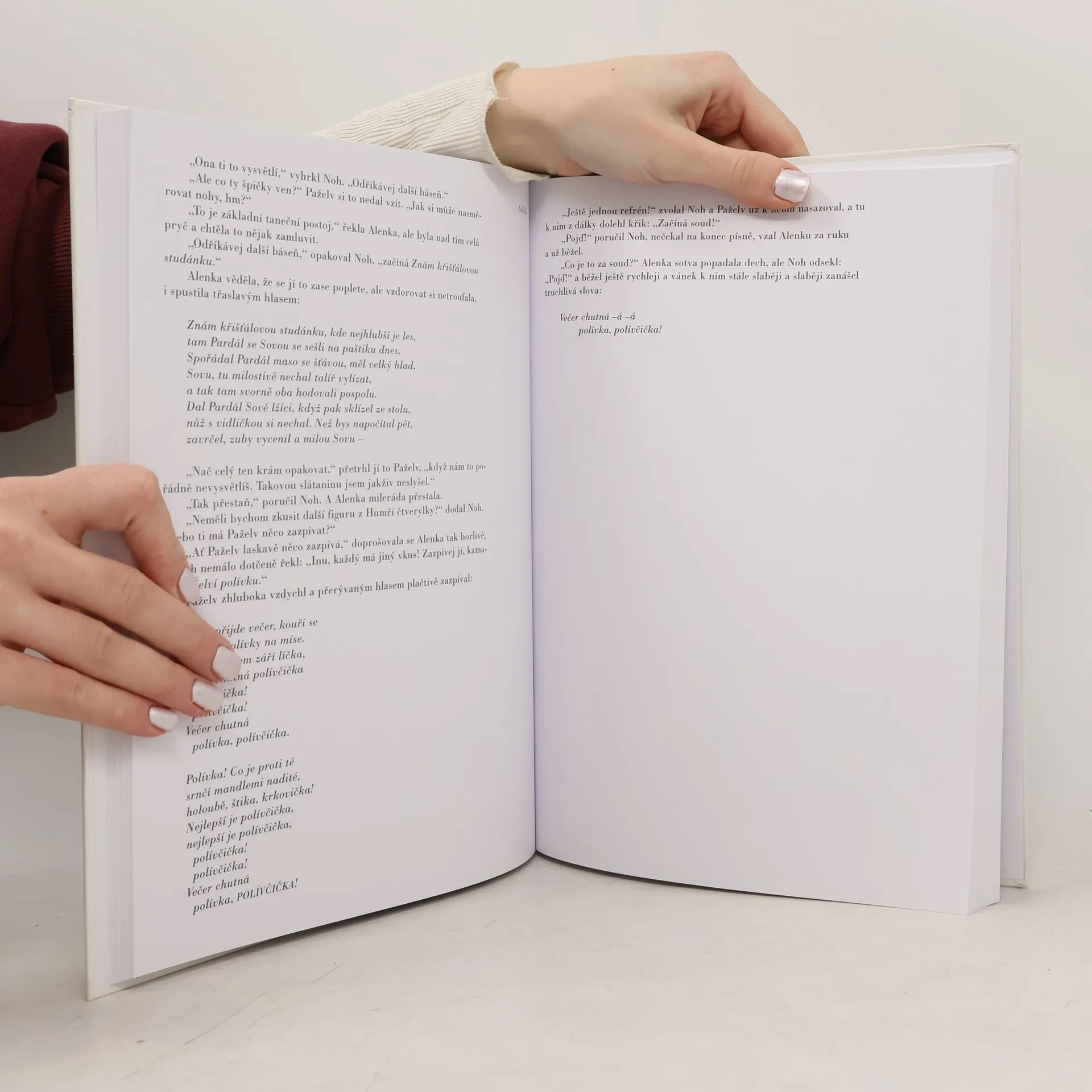 Obsahuje Alenka v kraji divů, Za zrcadlem a s čím se tam Alenka setkala. Alenka v říši divů je dílo anglického matematika a logika Lewise Carrolla, který ji údajně napsal pro malou holčičku Alici Liddellovou. Dílu se dostalo vědecké interpretace a bylo označeno za mimořádné. Sama hlavní postava, neustále ohromená Alenka v bezděčných reakcích na imaginativní svět plný podivuhodných věcí a událostí, Carrollův um logicky svázat absurdum světa v celé šíři a líčená přirozenost i znalost dětského chování, zaručili dílu světové uznání a přerod v klasiku.