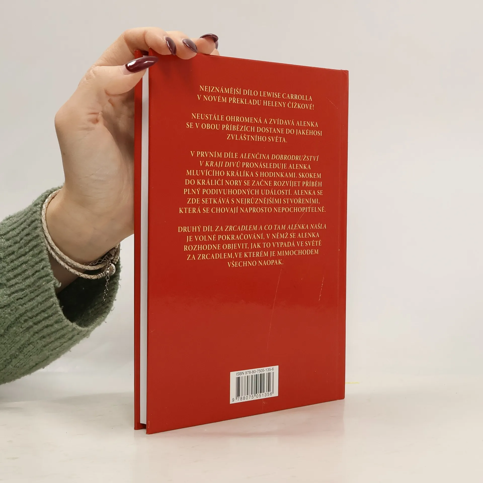Nejznámější dílo Lewise Carrolla v novém překladu Heleny Čížkové. Neustále ohromená a zvídavá Alenka se v obou příbězích obsažených v knize dostane do zvláštního cizího světa. V prvním díle Alenčina dobrodružství v kraji divů pronásleduje Alenka mluvícího králíka s hodinkami. Skokem do králičí nory se začne rozvíjet příběh plný podivuhodných událostí. Alenka se zde setkává s nejrůznějšími stvořeními, která se chovají zcela nepochopitelně. Druhý díl Za zrcadlem a co tam Alenka našla je volné pokračování, v němž se Alenka rozhodne objevit, jak to vypadá ve světě za zrcadlem, ve kterém je mimochodem všechno naopak.
