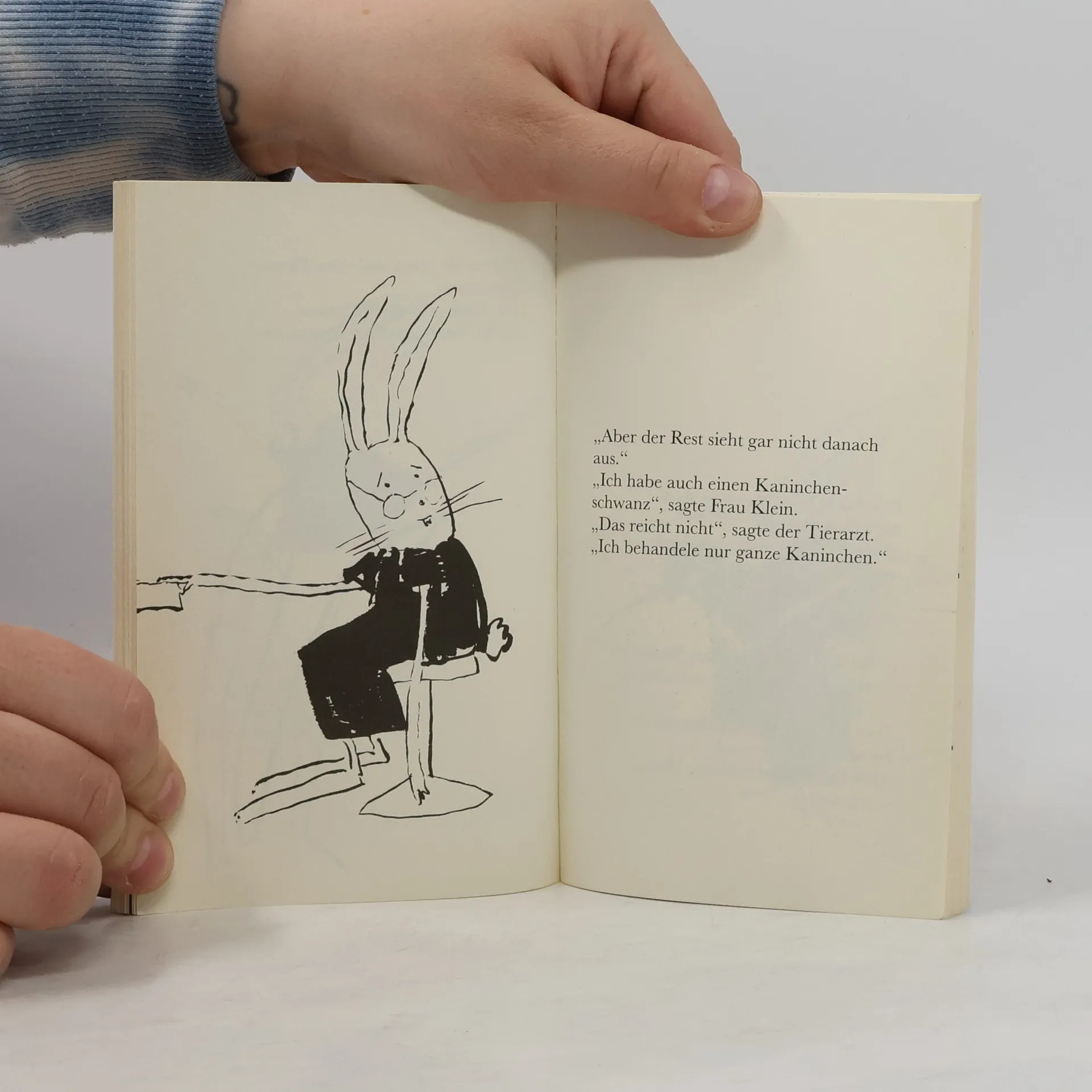 Als mevrouw Klein immer mehr wie ein Kaninchen aussieht, finden alle sie seltsam, außer Herr Klein. Prentenbuch mit krasser, quasikinderlicher Zeichnungen in Schwarz-Weiß. Ab ca. 6 Jahren.