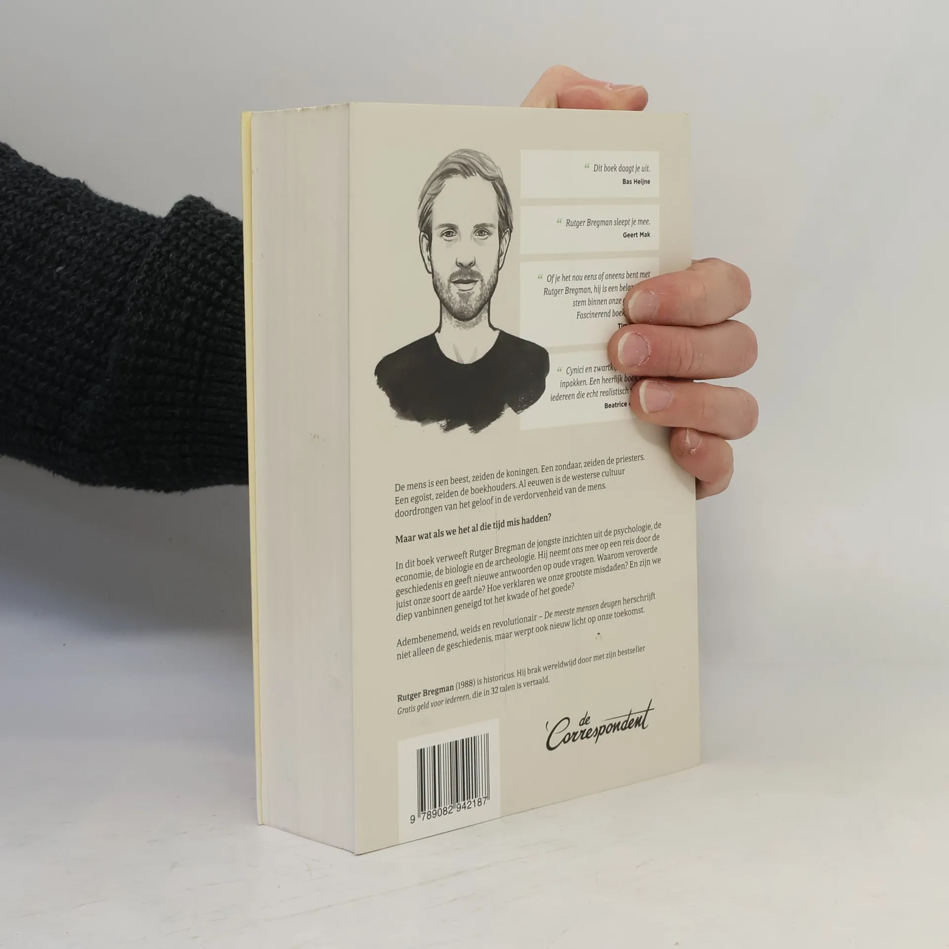 De mens is een beest, zeiden de koningen. Een zondaar, zeiden de priesters. Een egoïst, zeiden de boekhouders. Al eeuwen is de westerse cultuur doordrongen van het geloof in de verdorvenheid van de mens. Maar wat als we het al die tijd mis hadden? In dit boek verweeft Rutger Bregman de jongste inzichten uit de psychologie, de economie, de biologie en de archeologie. Hij neemt ons mee op een reis door de geschiedenis en geeft nieuwe antwoorden op oude vragen. Waarom veroverde juist onze soort de aarde? Hoe verklaren we onze grootste misdaden? En zijn we diep vanbinnen geneigd tot het goede of het kwade? Adembenemend, weids en revolutionair – De meeste mensen deugen herschrijft niet alleen de geschiedenis, maar werpt ook nieuw licht op onze toekomst. ‘Een indrukwekkend boek.’ – Jan Terlouw ‘Rutger Bregman sleept je mee.’ – Geert Mak ‘Of je het nou eens of oneens bent met Rutger Bregman, hij is een belangrijke stem binnen onze generatie. Fascinerend boek, lees het.’ – Tim Hofman ‘Cynici en zwartkijkers kunnen inpakken. Een heerlijk boek voor iedereen die echt realistisch wil zijn.’ – Beatrice de Graaf