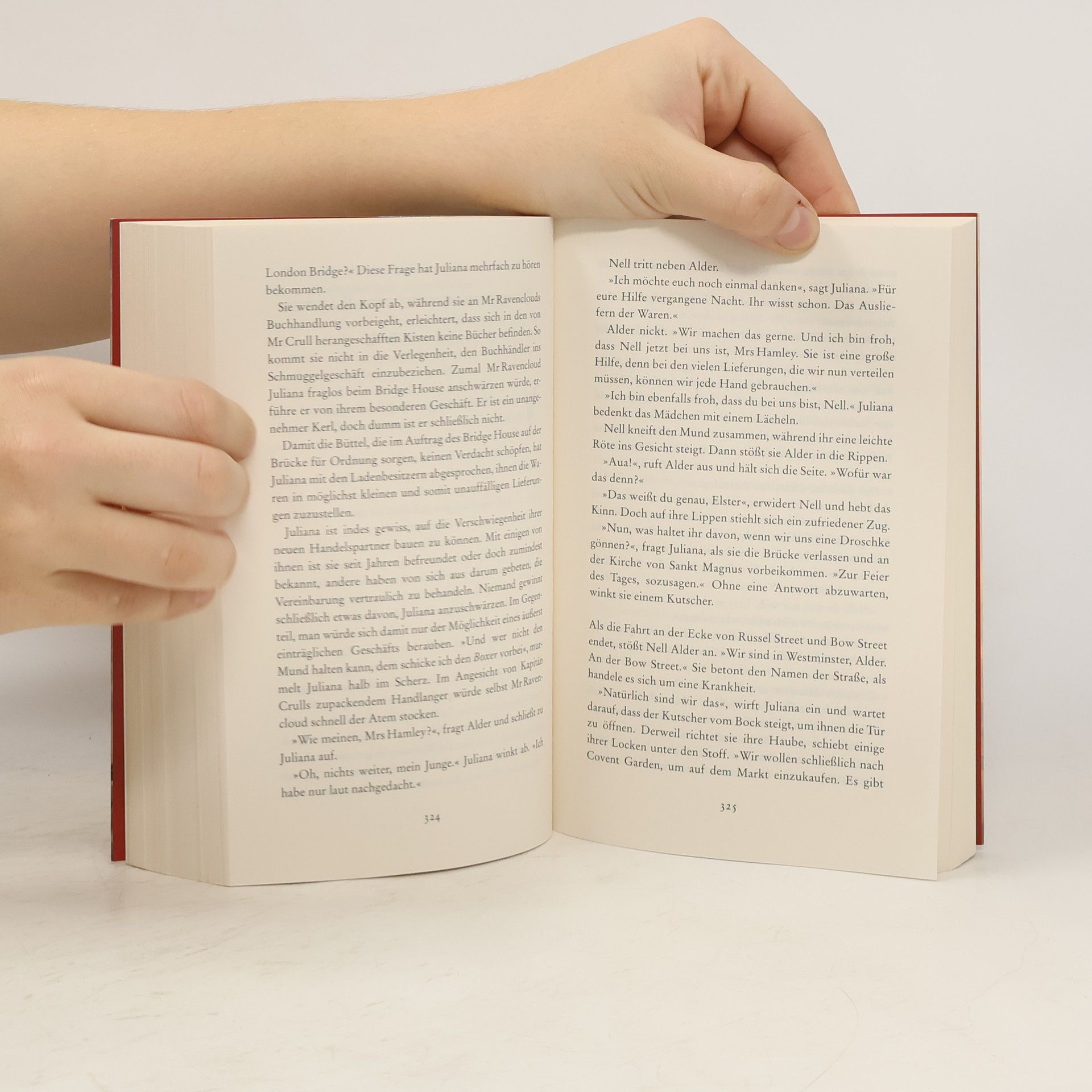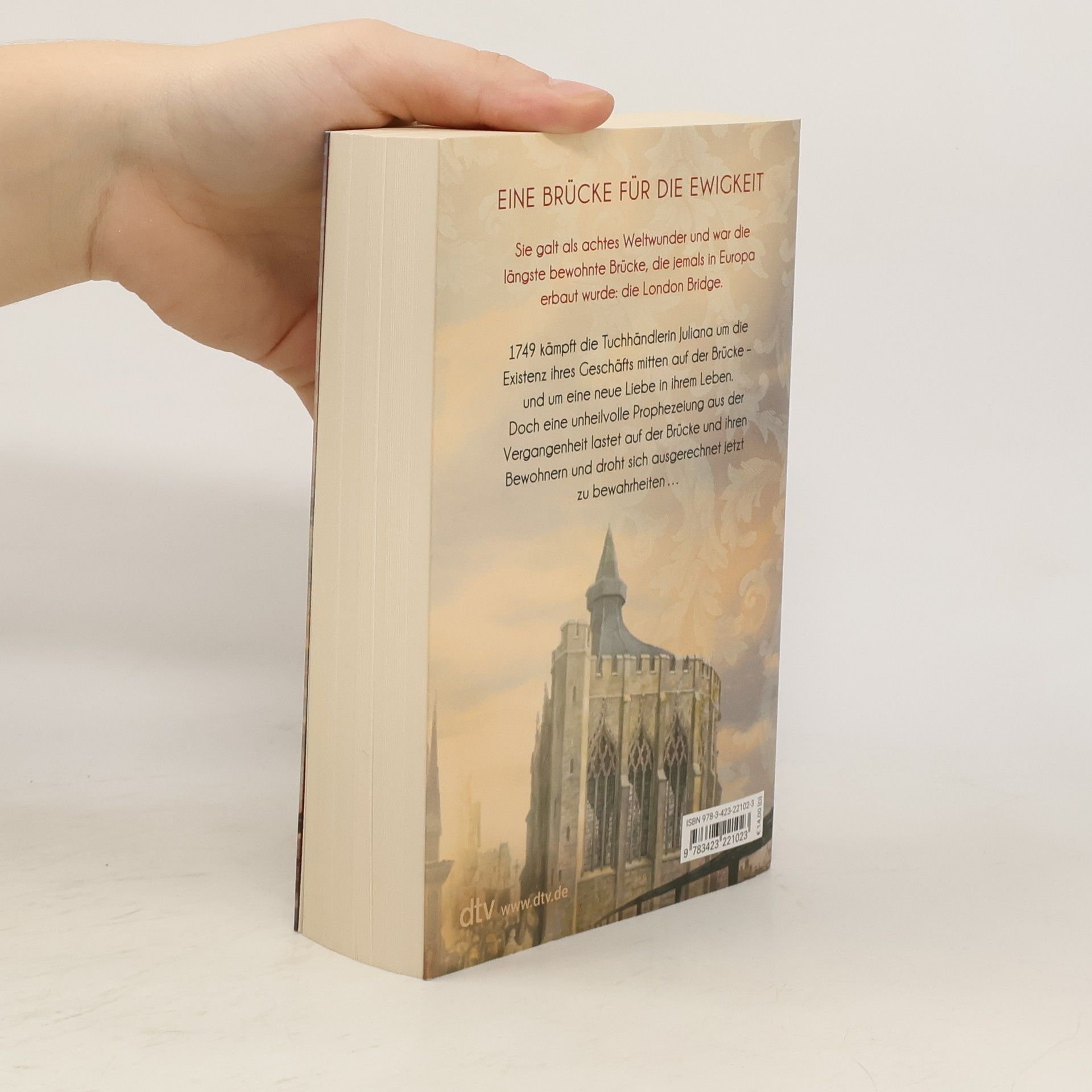Eine Brücke für die Ewigkeit London 1749: Die frisch verwitwete Tuchhändlerin Juliana Hamley muss mit allen Mitteln um ihren Tuchladen mitten auf der London Bridge kämpfen. Die Geschäfte gehen schlecht, sie ist hoch verschuldet und der Bau einer zweiten Brücke über die Themse bedroht die Existenz aller eingesessenen Geschäfte. In ihrer Not steigt sie ins Schmuggelgeschäft ein, tatkräftig unterstützt von dem gewieften Straßenjungen Alder. Doch Gefahren lauern überall. Kann sie dem neuen Gehilfen des Brückenmeisters trauen? Auch die London Bridge selbst birgt ein dunkles Geheimnis. Ausgerechnet die ehemalige Brückenkapelle, in der sich Julianas Geschäft befindet, steht im Mittelpunkt einer jahrhundertealten Weissagung, welche den Untergang der Brücke beschwört ...