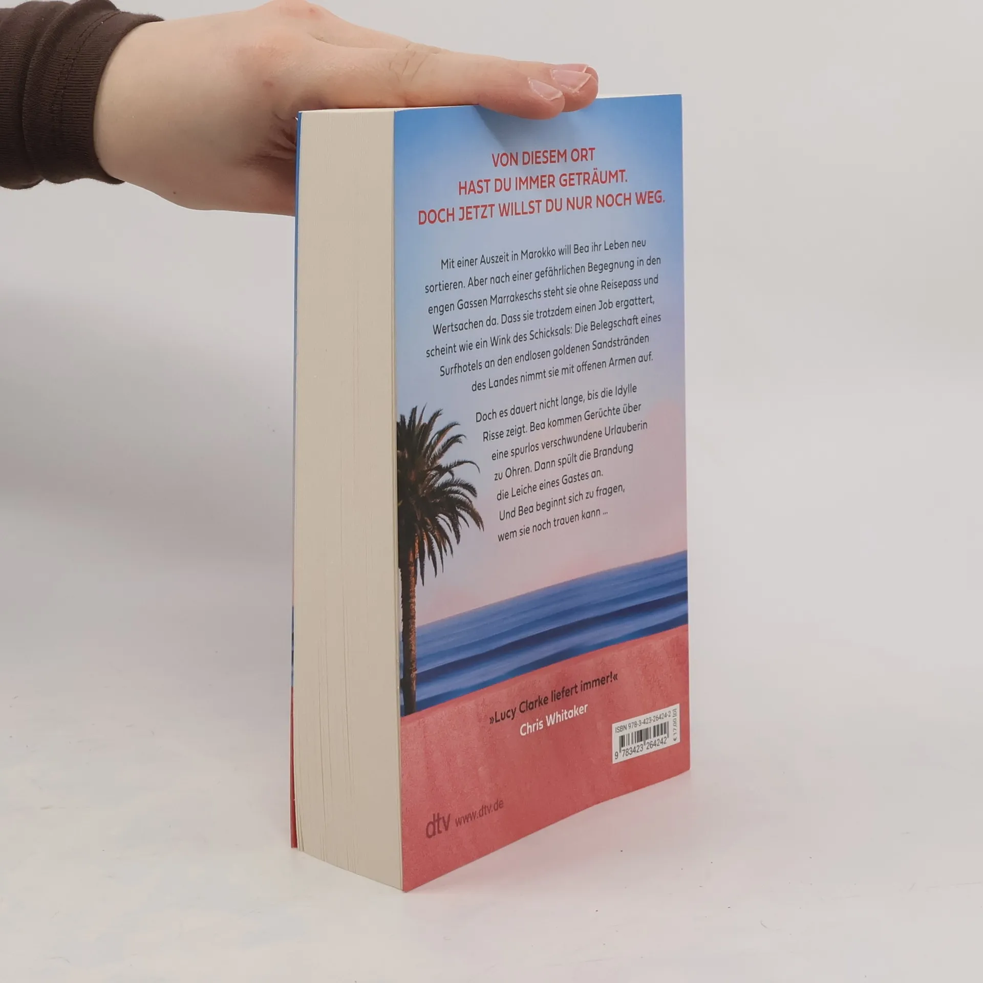 Du glaubst, du bist im Paradies gelandet. Doch das Paradies ist tödlich. Mit einer Auszeit in Marokko will Bea ihr Leben neu sortieren. Doch nach einer gefährlichen Begegnung in den engen Gassen Marrakeschs sind Geld und Ausweis weg. Dass sie trotzdem einen Job ergattert, scheint wie ein Wink des Schicksals: Die Belegschaft eines Surfhotels an den endlosen, goldenen Sandstränden des Landes nimmt sie mit offenen Armen auf. Das Meer ist kristallklar, am Abend taucht die Sonne die roten Klippen in ein magisches Licht. Surfer und Yogis gehen ein und aus. Doch es dauert nicht lange, bis die Idylle Risse zeigt. Bea kommen Gerüchte über eine spurlos verschwundene Urlauberin zu Ohren. Dann spült die Brandung die Leiche eines Gastes an. Und Bea muss sich fragen, wem sie noch trauen kann …