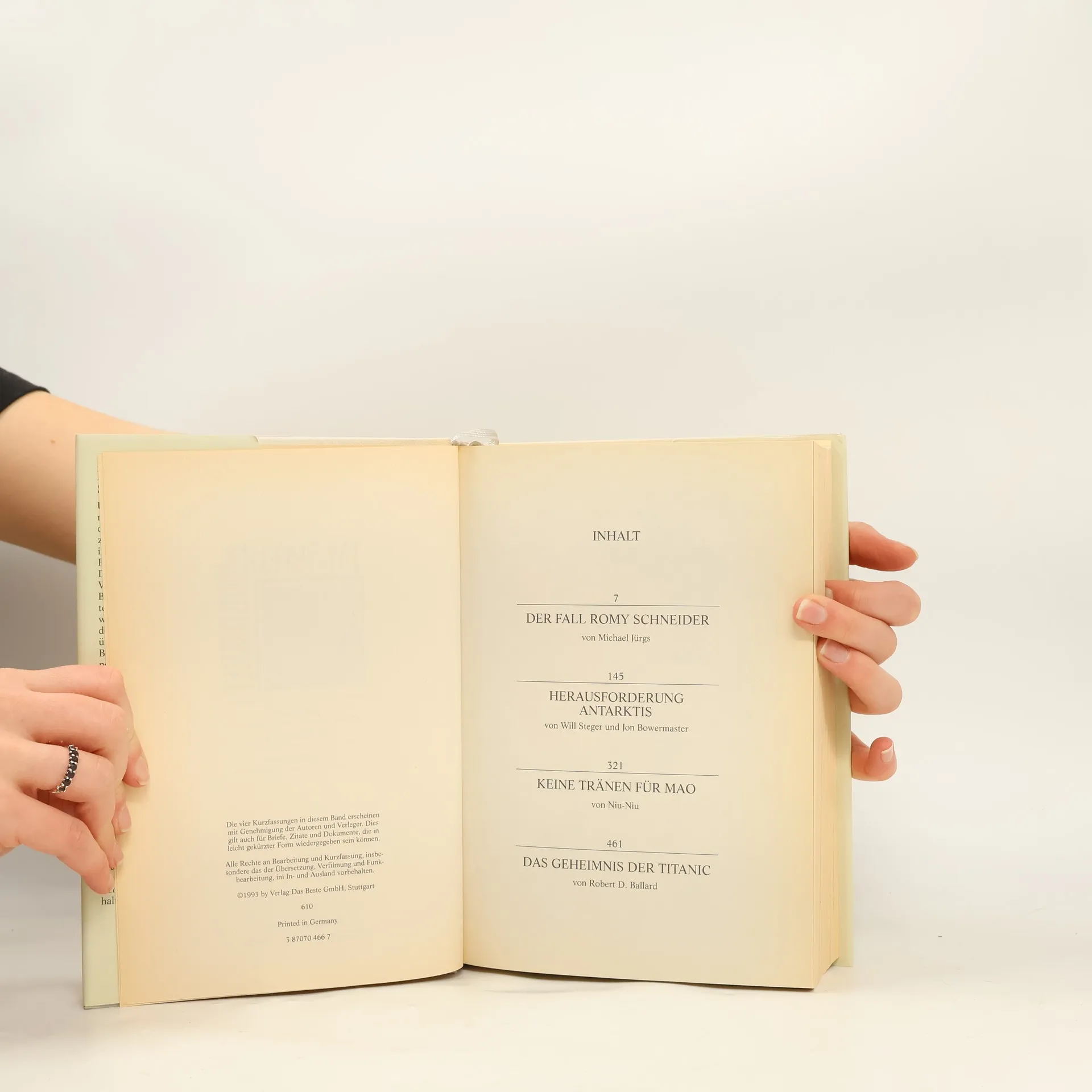 Der Fall Romy Schneider. Herausforderung Antarktis.Keine Tränen für Mao. Das Geheimnis der Titanic, Michael Jürgs, Will Steger, Jon Bowermaster, Niu Niu, Robert Ballard