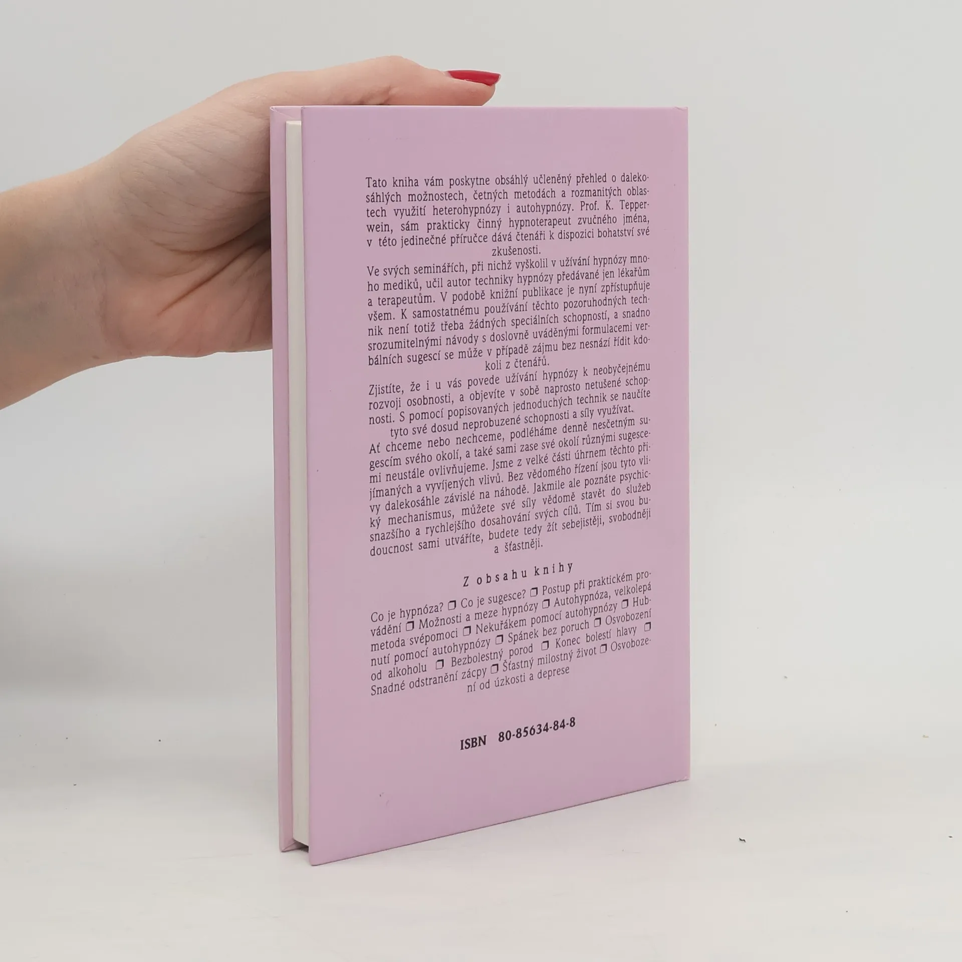 Tato kniha vám poskytne obsáhlý učleněný přehled o dalekosáhlých možnostech, četných metodách a rozmanitých oblastech využití heterohypnózy i autohypnózy. Autor, sám prakticky činný hypnoterapeut zvučného jména, v této jedinečné příručce dává čtenáři k dispozici bohatství své zkušenosti. Ve svých seminářích, při nichž vyškolil v užívání hypnózy mnoho mediků, učil techniky hypnózy předávané jen lékařům a terapeutům. V podobě knižní publikace je nyní zpřístupňuje všem. K samostatnému používání těchto pozoruhodných technik není totiž třeba žádných speciálních schopností a snadno srozumitelnými návody s doslovně uváděnými formulacemi verbálních sugescí se může v případě zájmu bez nesnází řídit kdokoli z čtenářů. Zjistíte, že i u vás povede užívání hypnózy k neobyčejnému rozvoji osobnosti, a objevíte v sobě naprosto netušené schopnosti. S pomocí popisovaných jednoduchých technik se naučíte tyto své dosud neprobuzené schopnosti a síly využívat.