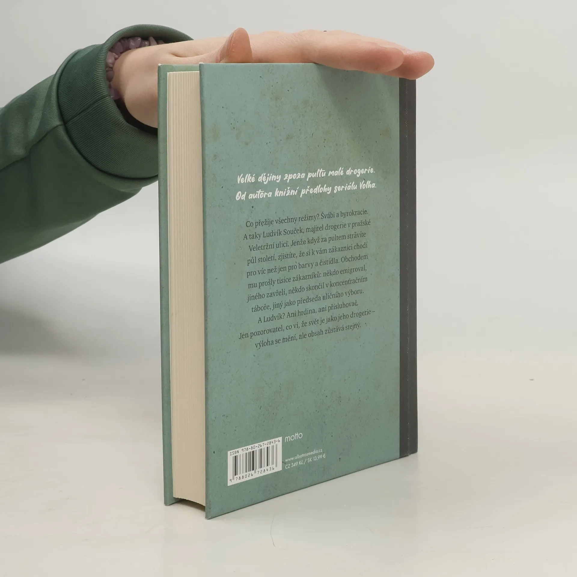 Velké dějiny zpoza pultu malé drogerie. Od autora knižní předlohy seriálu Volha. Co přežije všechny režimy? Švábi a byrokracie. A taky Ludvík Souček, majitel drogerie v pražské Veletržní ulici. Jenže když za pultem strávíte půl století, zjistíte, že si k vám zákazníci chodí pro víc než jen pro barvy a čistidla. Obchodem mu prošly tisíce zákazníků: někdo emigroval, jiného zavřeli, někdo skončil v koncentračním táboře, jiný jako předseda uličního výboru. A Ludvík? Ani hrdina, ani přisluhovač. Jen pozorovatel, co ví, že svět je jako jeho drogerie – výloha se mění, ale obsah zůstává stejný.