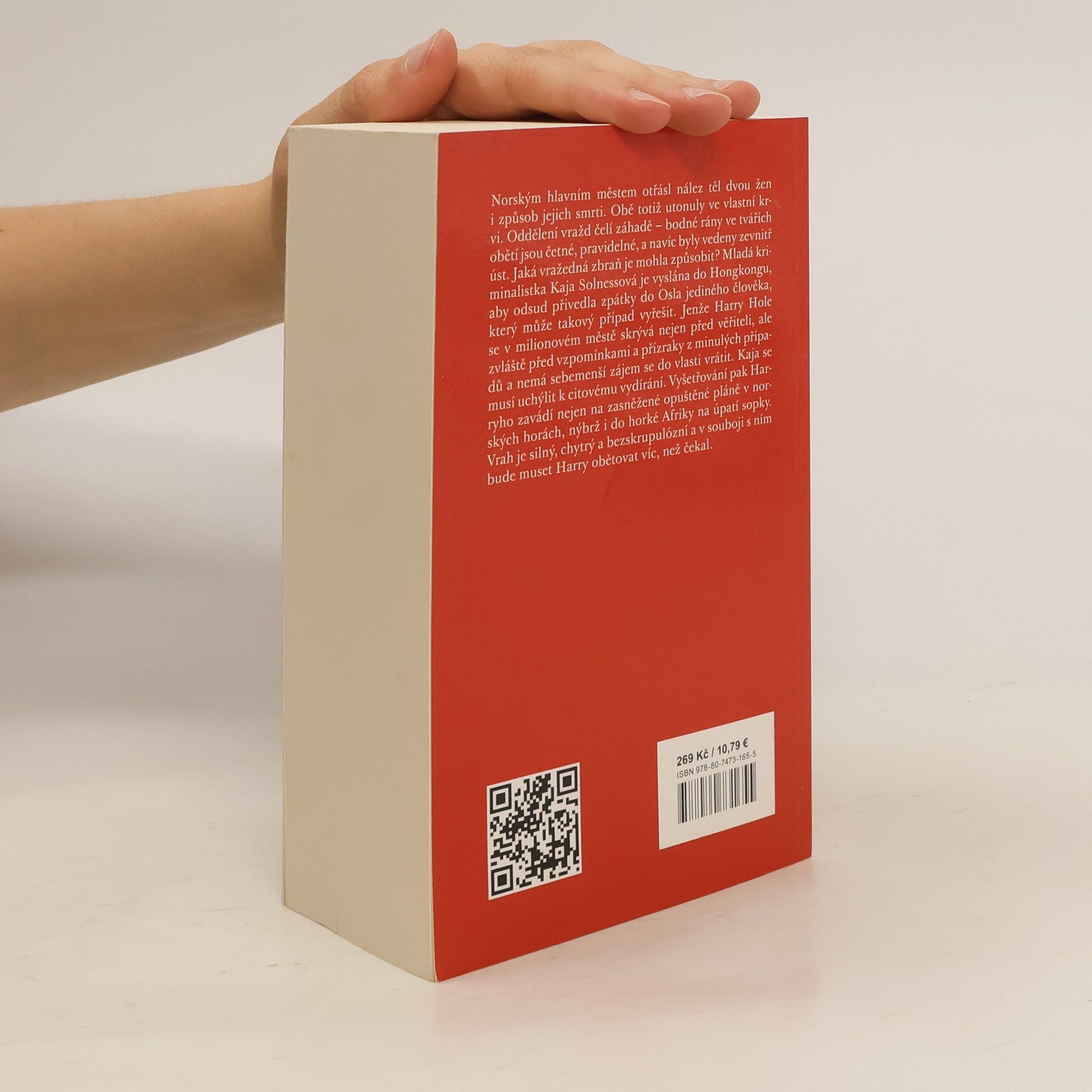 Norským hlavním městem otřásl nález dvou ženských těl i způsob jejich smrti. Obě totiž utonuly ve vlastní krvi. Oddělení vražd čelí záhadě - bodné rány ve tvářích obětí jsou četné, pravidelné, a navíc byly vedeny zevnitř úst. Jaká vražedná zbraň je mohla způsobit? Mladá kriminalistka Kaja Solnessová je vyslána do Hongkongu, aby odsud přivedla zpátky do Osla jediného člověka, který může takový případ vyřešit. Jenže Harry Hole se v milionovém městě skrývá nejen před věřiteli, ale zvláště před vzpomínkami a přízraky z minulých případů a nemá sebemenší zájem se do vlasti vrátit. Kaja se musí uchýlit k citovému vydírání. Vyšetřování pak Harryho zavádí nejen na zasněžené opuštěné pláně v norských horách, nýbrž i do horké Afriky na úpatí sopky. A jde v něm o život. Vrah je silný, chytrý a bezskrupulózní a v souboji s ním bude muset Harry obětovat víc, než čekal.