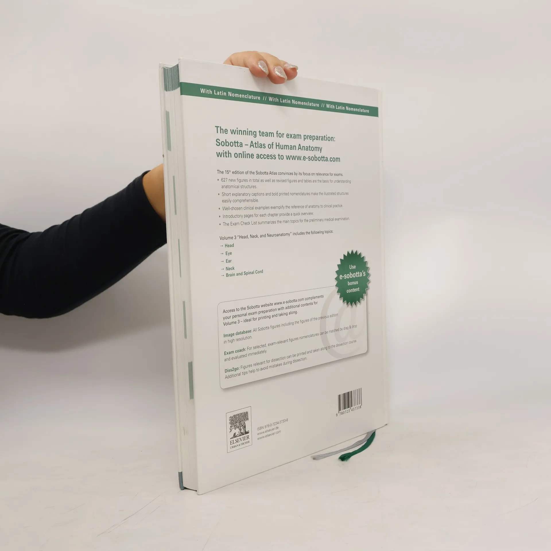 Includes topics such as: Head; Eye; Ear; Neck; and, Brain and Spinal Cord. This title features Image database: all Sobotta figures including the figures of the previous edition. It includes figures that are relevant for dissection and can be printed and taken along to the dissection course.