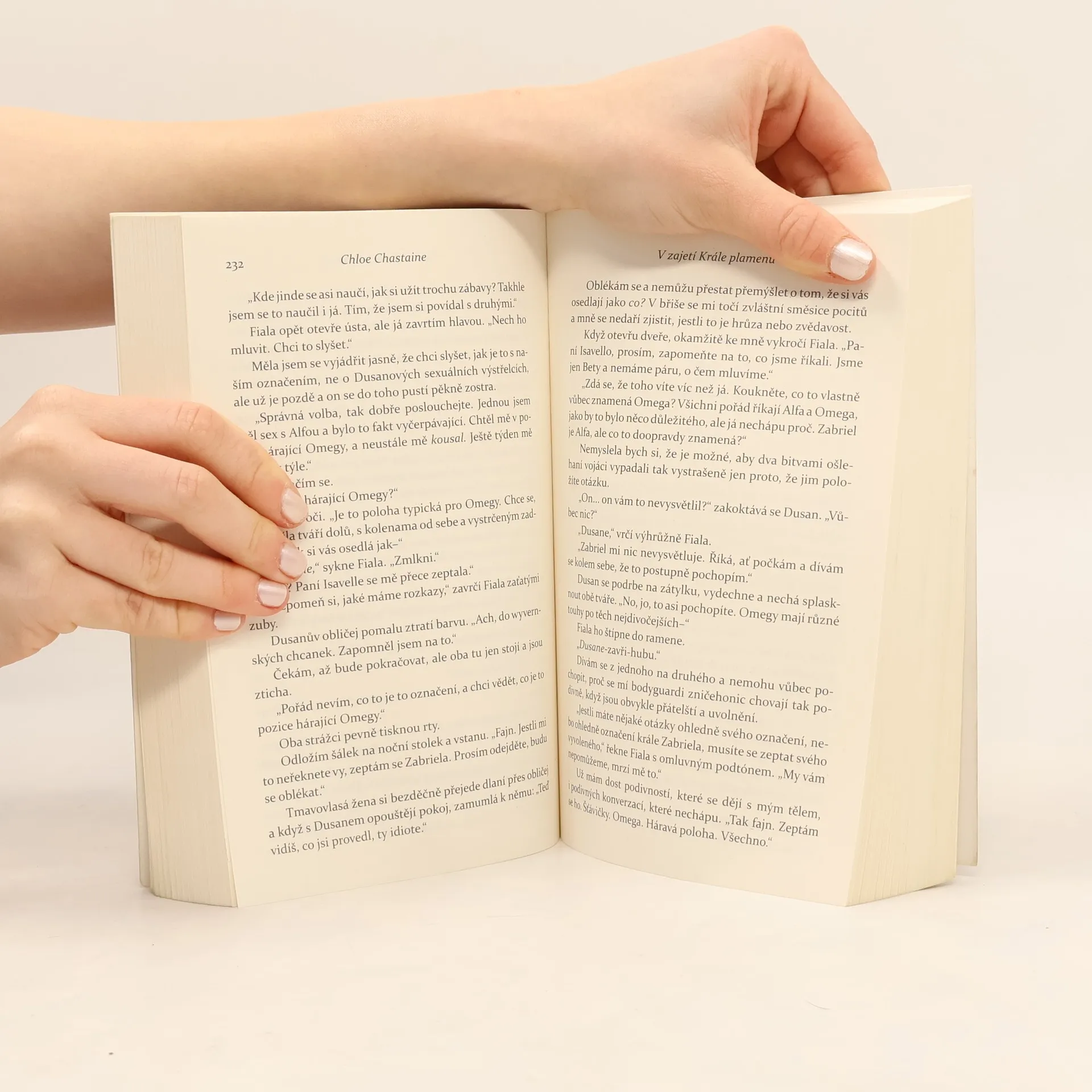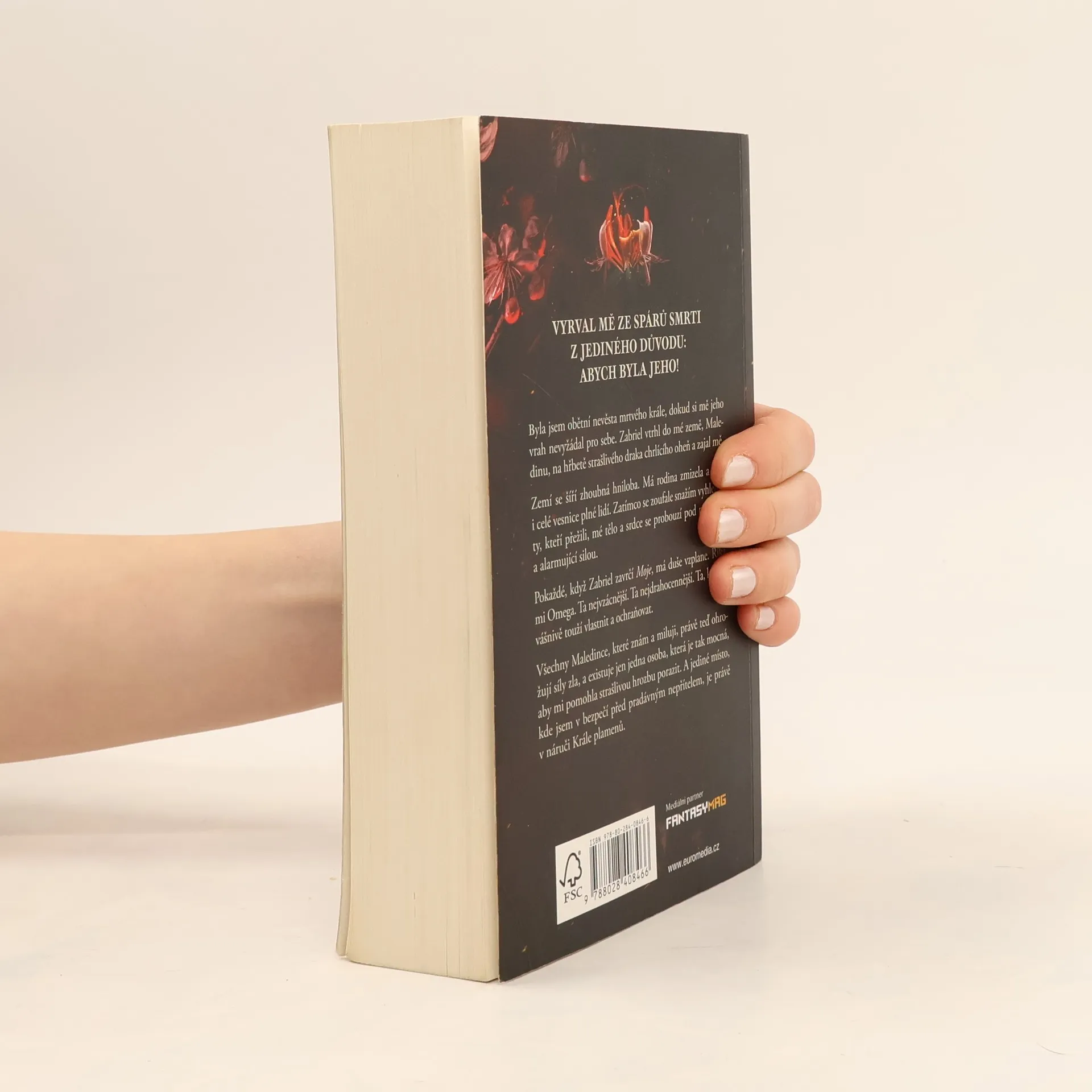 Vyrval mě z čelistí smrti z jednoho důvodu – být jeho. Byla jsem obětní nevěstou mrtvého krále, dokud si mě jeho vrah nepřivlastnil. Zabriel vtrhl do mé země Maledin na hřbetě monstrózního, oheň chrlícího draka a vzal mě do zajetí. Smrtící Zabriel se nade mnou tyčí v ocelovém plátovém brnění a mohl by ze mě snadno rozdrtit život – ale Král plamenů nemá zájem mi ublížit. Místo toho zničí všechny, kteří mi ublížili v bouři ohně a pomsty. Hluboko v mé zemi je zhoubná hniloba. Moje rodina zmizela spolu s celými vesnicemi lidí. Když se zoufale snažím najít ty, kteří chybí, mé tělo a srdce se probouzejí pod mocnou a alarmující silou. Zabriel zapálí mou duši pokaždé, když zavrčí: "Moje." Říká mi Omega. Nejvzácnější. Nejzranitelnější. Ta, kterou touží vlastnit a chránit. Když zlé síly v Maledinu ohrožují každého, koho znám a miluji, existuje jen jedna osoba, která je dostatečně silná, aby mi pomohla je porazit, a jediné místo, kde jsem v bezpečí před prastarým nepřítelem, je v náručí Krále plamenů.