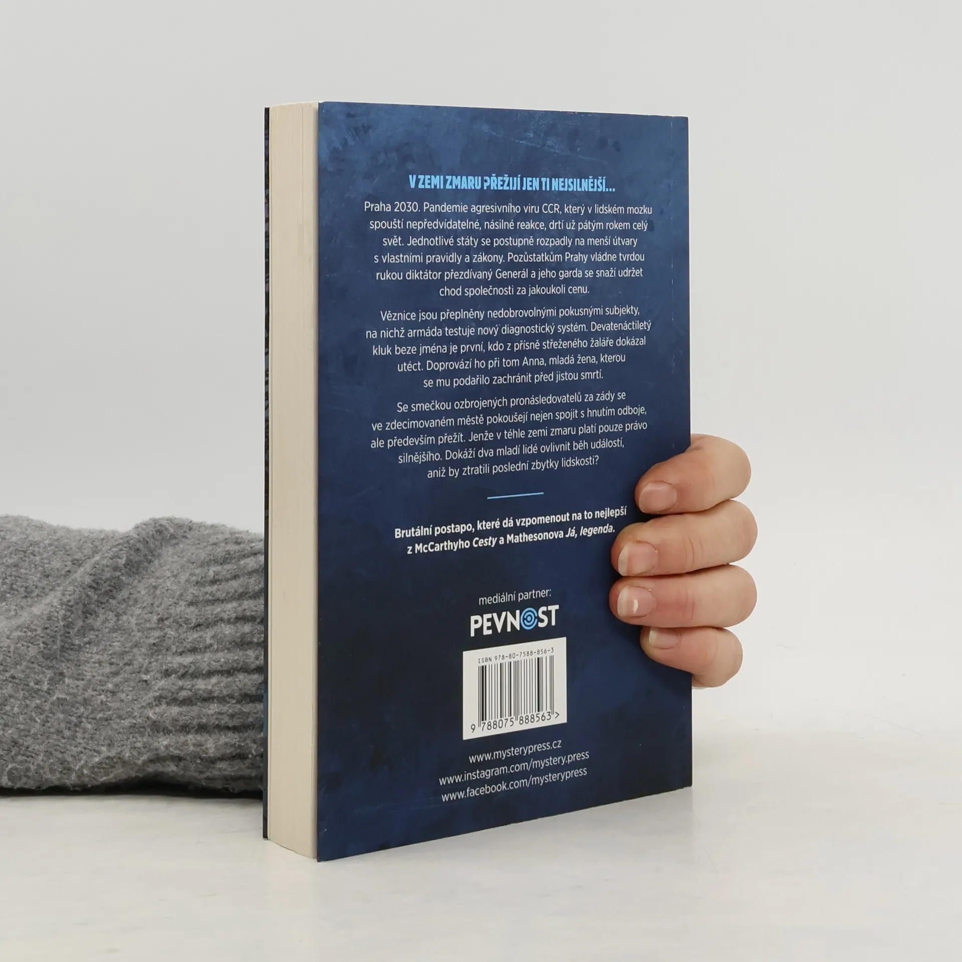 POKRAČOVÁNÍ SYROVÉHO POSTAPA OD AUTORA BESTSELLERU ŘÍKAJÍ MI LARS... Pandemie záhadné nemoci CCR drtí už pátým rokem celý svět a jednotlivé státy se zatím rozpadly na menší útvary s vlastními pravidly a zákony. Praze vládne Generál a jeho garda se snaží udržet chod společnosti za jakoukoli cenu. Věznice jsou tak přeplněny často nevinnými lidmi, uvnitř platí právo silnějšího a mnohdy slouží jen jako zásobárny masa k pokusům v boji s CCR. Devatenáctiletý kluk beze jména je prvním, komu se z přísně střeženého vězení podaří utéct. Doprovází ho přitom žena, kterou jen několik chvil předtím zachránil před jistou smrtí. Se smečkou pronásledovatelů v patách se ve zdecimované Praze pokoušejí nejen spojit s dalšími odpůrci režimu, ale především přežít.