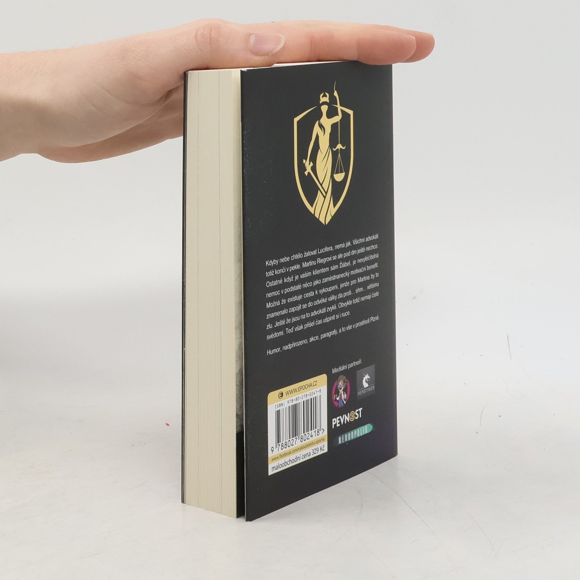 Kdyby nebe chtělo žalovat Lucifera, nemá jak. Všichni advokáti totiž končí v pekle. Martinu Riegrovi se ale pod drn ještě nechce. Ostatně když je vaším klientem sám Ďábel, je nevyléčitelná nemoc v podstatě něco jako zaměstnanecký motivační benefit. Možná že existuje cesta k vykoupení, jenže pro Martina by to znamenalo zapojit se do odvěké války zla proti… ehm… většímu zlu. Ještě že jsou na to advokáti zvyklí. Obvykle totiž nemají čisté svědomí. Teď však přišel čas ušpinit si i ruce.Humor, nadpřirozeno, akce, paragrafy, a to vše v prostředí Plzně.