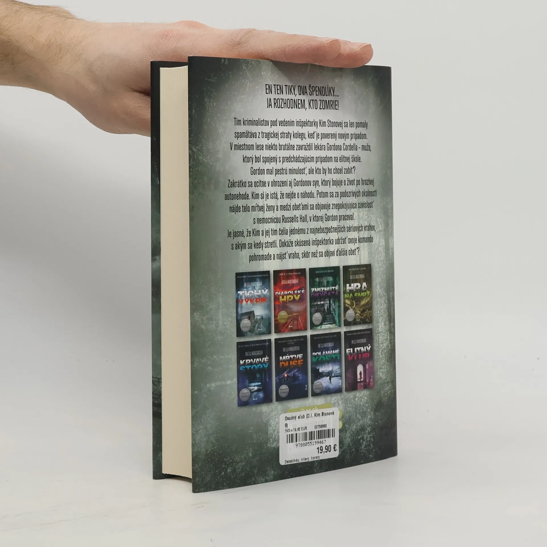 Tím kriminalistov pod vedením inšpektorky Kim Stonovej sa len pomaly spamätáva z tragickej straty kolegu, keď je poverený novým prípadom. V miestnom lese niekto brutálne zavraždil lekára Gordona Cordella – muža, ktorý bol spojený s predchádzajúcim prípadom na elitnej škole. Gordon mal pestrúminulosť, ale kto by ho chcel zabiť? Zakrátko sa ocitne v ohrození aj Gordonov syn, ktorý bojuje o život po hrozivej autonehode. Kim si je istá, že nejde o náhodu. Potom sa za podozrivých okolností nájde telo mŕtvej ženy a medzi obeťami sa objavuje znepokojujúca súvislosť s nemocnicou Russells Hall, v ktorej Gordon pracoval. Je jasné, že Kim a jej tím čelia jednému z najnebezpečnejších sériových vrahov, s akým sa kedy stretli. Dokáže skúsená inšpektorka udržať svoje komando pohromade a nájsť vraha, skôr než sa objaví ďalšia obeť?