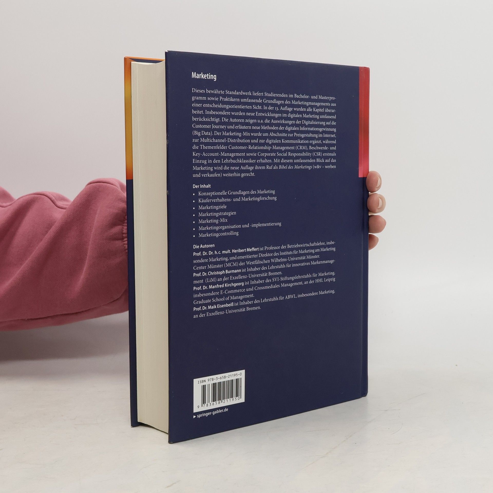 Dieses bewährte Standardwerk liefert Studierenden im Bachelor- und Masterprogramm sowie Praktikern umfassende Grundlagen des Marketingmanagements und widmet sich eingehend allen neuen Entwicklungen der marktorientierten Unternehmensführung. In der 13. Auflage wurden alle Kapitel überarbeitet. Insbesondere wurden neue Entwicklungen im digitalen Marketing umfassend berücksichtigt. Die Autoren zeigen u.a. die Auswirkungen der Digitalisierung auf die Customer Journey und erläutern neue Methoden der digitalen Informationsgewinnung (Big Data). Der Marketing-Mix wurde um Abschnitte zur Preisgestaltung im Internet, zur Multichannel-Distribution und zur digitalen Kommunikation ergänzt, während die Themenfelder Customer-Relationship-Management (CRM), Beschwerde- und Key Account-Management sowie Corporate Social Responsibility (CSR) erstmals Einzug in den Lehrbuchklassiker erhalten. Mit diesem umfassenden Blick auf das Marketing wird die neue Auflage ihrem Ruf als "Bibel des Marketings" (w & v - werben und verkaufen) weiterhin gerecht. Der Inhalt Konzeptionelle Grundlagen des Marketing Käuferverhaltens- und Marketingforschung Marketingziele Marketingstrategien Marketing-Mix Marketingorganisation und -implementierung Marketingcontrolling