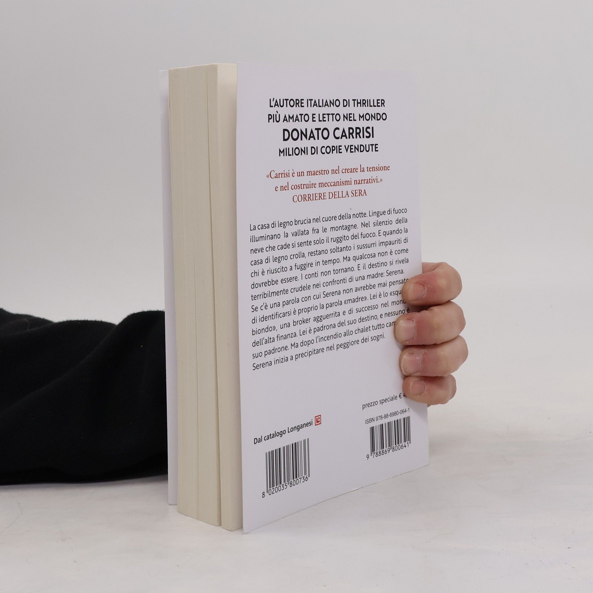 La casa di legno brucia nel cuore della notte. Lingue di fuoco illuminano la vallata fra le montagne. Nel silenzio della neve che cade si sente solo il ruggito del fuoco. E quando la casa di legno crolla, restano soltanto i sussurri impauriti di chi è riuscito a fuggire in tempo. Ma qualcosa non è come dovrebbe essere. I conti non tornano. E il destino si rivela terribilmente crudele nei confronti di una madre: Serena. Se c'è una parola con cui Serena non avrebbe mai pensato di identificarsi è proprio la parola «madre». Lei è lo «squalo biondo», una broker agguerrita e di successo nel mondo dell'alta finanza. Lei è padrona del suo destino, e nessuno è suo padrone. Ma dopo l'incendio allo chalet tutto cambia, e Serena inizia a precipitare nel peggiore dei sogni.