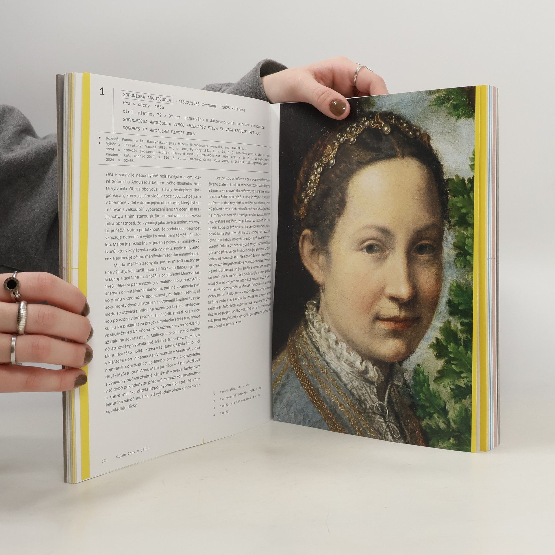 Katalog představí tvorbu žen z oblasti střední Evropy, Nizozemí a Itálie od středověku až do konce 19. století, přičemž se zaměří na malířství, sochařství, kresbu, grafiku, ale i užité umění. Kniha je členěna do pěti kapitol: Klášter, Silné ženy z jihu, (Ne)závislé ženy ze severu, V grafické dílně a Salon. Příběhy žen, mistryň a umělkyň nechávají vyniknout zásadnímu poselství: gender sice ovlivňuje charakter tvorby a donedávna v uvedených geografických oblastech limitoval možnosti vzdělání i prosazení žen, ale rozhodující je talent, schopnosti, píle a vůle uspět. Teprve na konci 19. století se na tvorbu žen přestalo pohlížet jako na kuriozitu a zvláštnost. Publikace také překvapí odvahou středověkých žen, jež dokázaly projevit nečekanou fantazii i hluboké emoce. Katalog představí práce anonymních žen, ale také tvorbu těch, které znala celá Evropa – například výšivku, již vytvořila císařovna Marie Terezie. Nejslavnějším dílem v knize je obraz Hra v šachy od Sofonisby Anguissoly z roku 1555, který se stal přímo ikonickým dílem ženské tvorby. Nadání této italské umělkyně obdivoval i samotný Michelangelo.