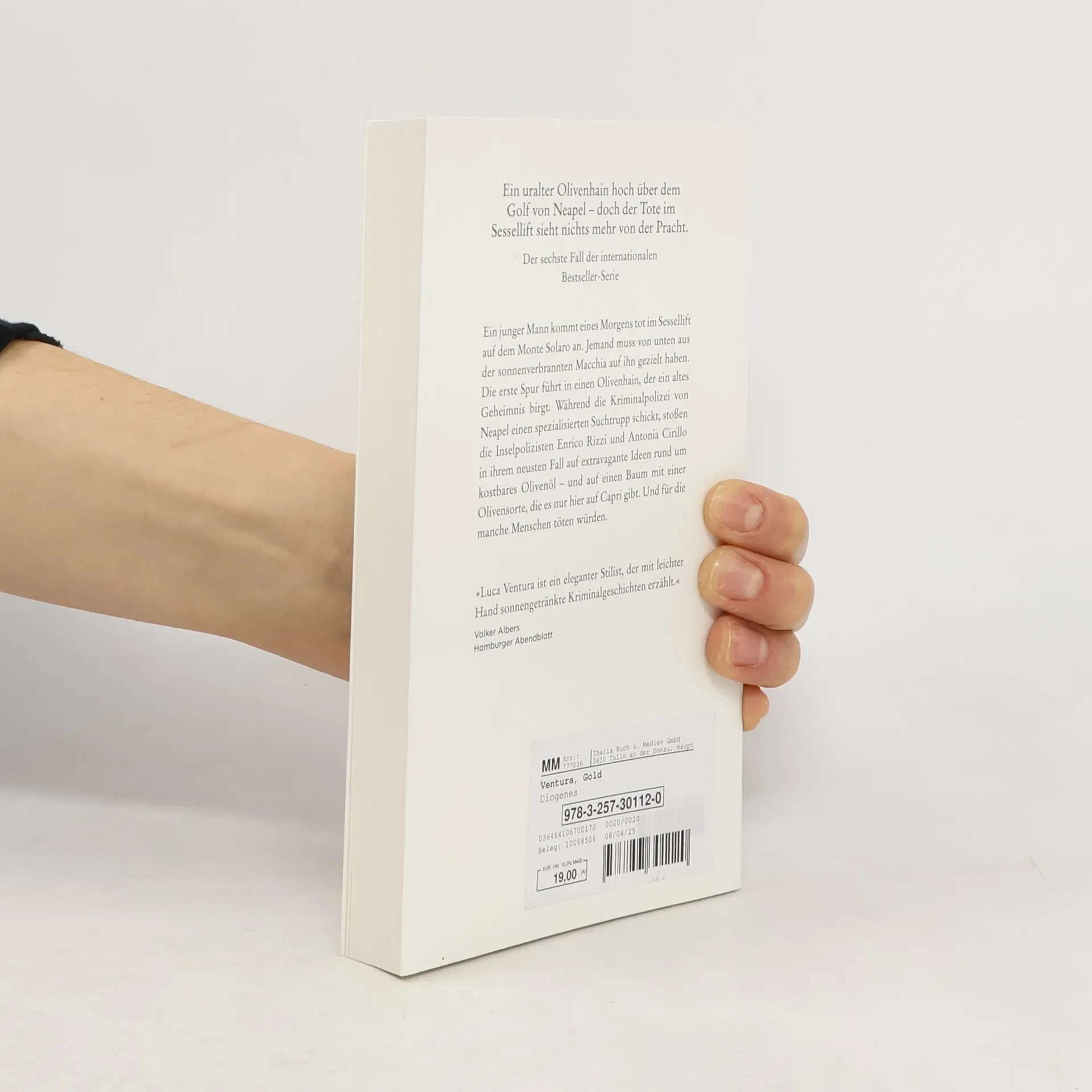 Ein junger Mann kommt eines Morgens tot im Sessellift auf dem Monte Solaro an. Jemand muss von unten aus der sonnenverbrannten Macchia auf ihn gezielt haben. Die erste Spur führt in einen Olivenhain, der ein altes Geheimnis birgt. Während die Kriminalpolizei von Neapel einen spezialisierten Suchtrupp schickt, stoßen die Inselpolizisten Enrico Rizzi und Antonia Cirillo in ihrem neusten Fall auf extravagante Ideen rund um kostbares Olivenöl – und auf einen Baum mit einer Olivensorte, die es nur hier auf Capri gibt. Und für die manche Menschen töten würden.