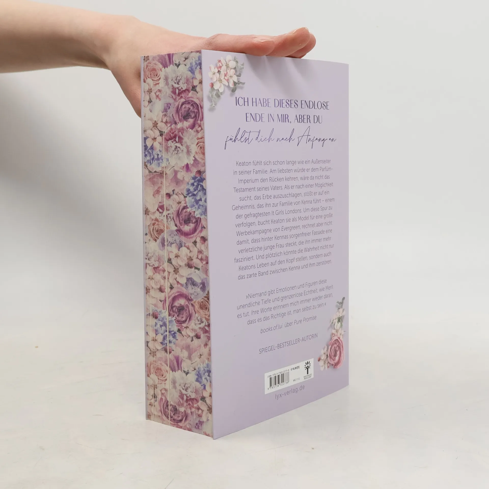 Ich habe dieses endlose Ende in mir, aber du fühlst dich nach Anfang an Keaton fühlt sich schon lange wie ein Außenseiter in seiner Familie. Am liebsten würde er dem Parfüm-Imperium den Rücken kehren, wäre da nicht das Testament seines Vaters. Als er nach einer Möglichkeit sucht, das Erbe auszuschlagen, stößt er auf ein Geheimnis, das ihn zur Familie von Kenna führt - einem der gefragtesten It Girls Londons. Um diese Spur zu verfolgen, bucht Keaton sie als Model für eine große Werbekampagne von Evergreen, rechnet aber nicht damit, dass hinter Kennas sorgenfreier Fassade eine verletzliche junge Frau steckt, die ihn immer mehr fasziniert. Und plötzlich könnte die Wahrheit nicht nur Keatons Leben auf den Kopf stellen, sondern auch das zarte Band zwischen Kenna und ihm zerstören. »Niemand gibt Emotionen und Figuren diese unendliche Tiefe und grenzenlose Echtheit, wie Merit es tut. Ihre Worte erinnern mich immer wieder daran, dass es das Richtige ist, man selbst zu sein.« BOOKS.OF.LUI über PURE PROMISE Band 3 der EVERGREEN-EMPIRE-Trilogie, der neuen New-Adult-Reihe von Merit Niemeitz Dieses Buch gibt es in zwei Versionen: mit und ohne Farbschnitt. Sobald die Farbschnitt-Ausgabe ausverkauft ist, liefern wir die Ausgabe ohne Farbschnitt aus.