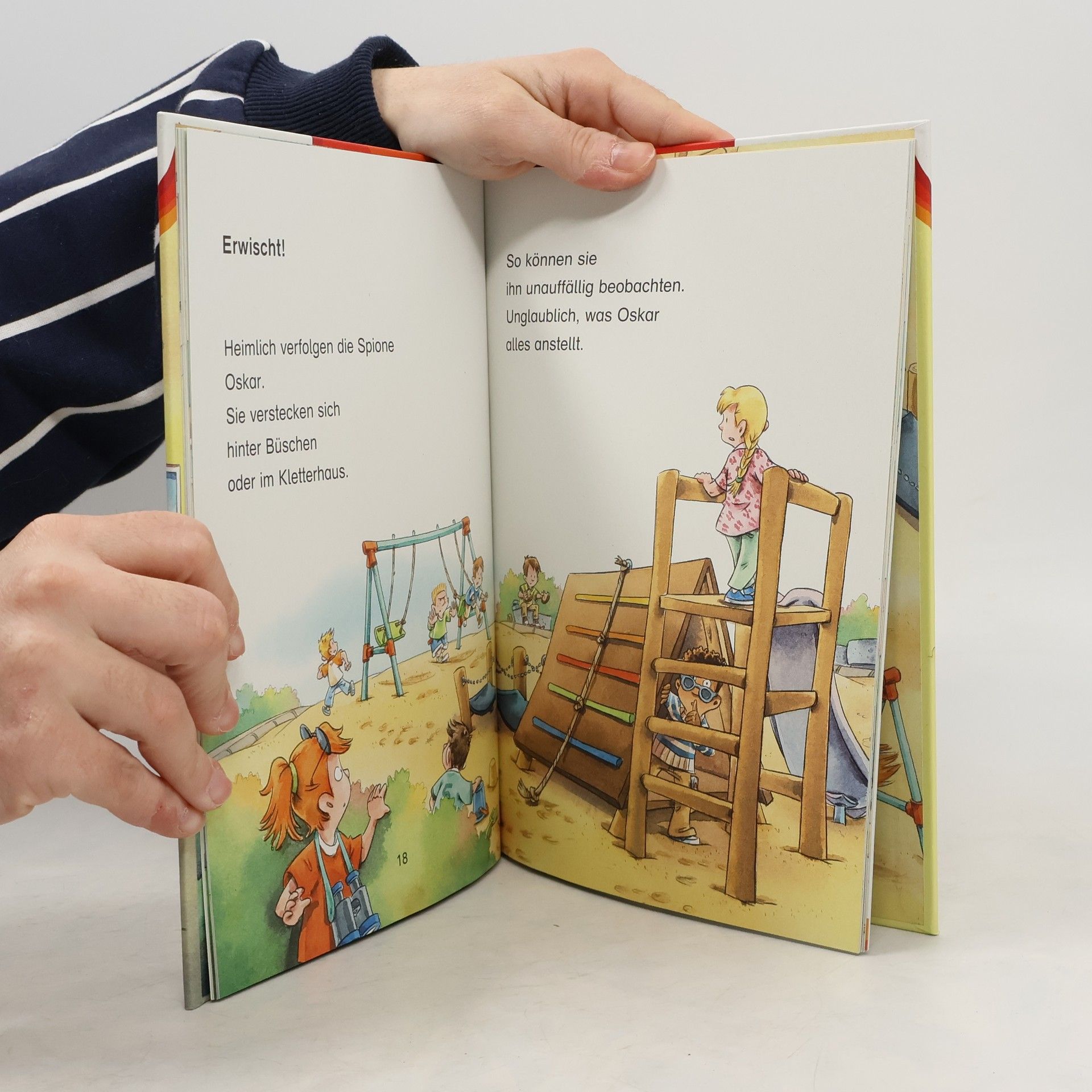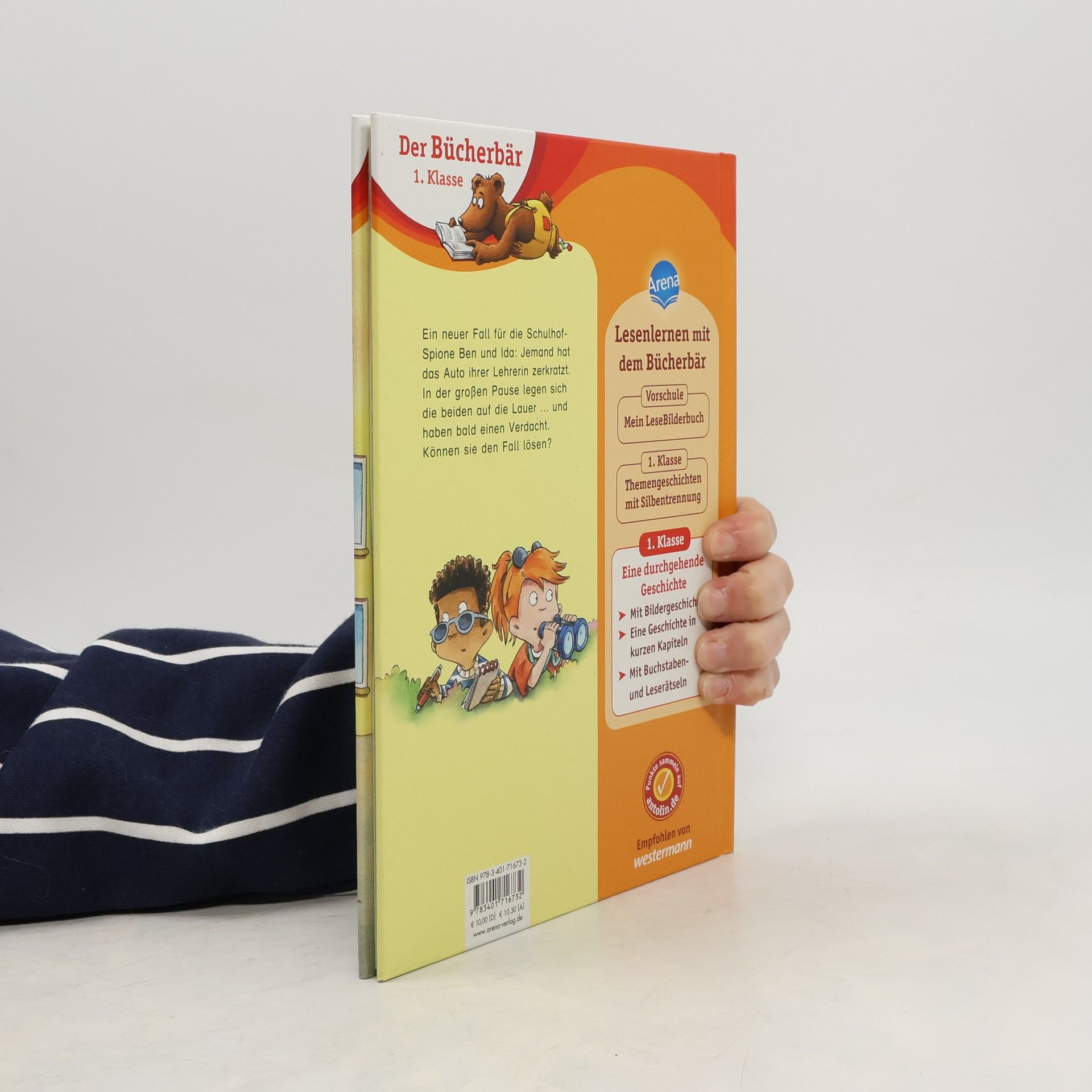 Lesen lernen mit einem spannenden Spionage-Fall ? Das macht stark für die erste Klasse Ben und Ida sind die Schulhof-Spione, sie kommen hinter jedes Geheimnis. Den gemeinen Oskar beobachten sie deshalb besonders gründlich in der großen Pause: Er sperrt jemanden ins Klo ein, zieht ein Mädchen an den Haaren und ärgert überhaupt gern andere Kinder. Klar, dass der Verdacht sofort auf ihn fällt, als Frau Hagner Kratzer an ihrem Auto entdeckt. Können Ben und Ida den Fall lösen? Dieses Buch richtet sich an Leseanfänger in der 1. Klasse. Die übersichtlichen Leseeinheiten und kurzen Zeilen sind ideal zum Lesenlernen. Zahlreiche Bildergeschichten unterstützen das Leseverständnis. Zusätzlich regen lustige Buchstaben- und Leserätsel am Ende des Buches zum Nachdenken und zum Gespräch über die Geschichte an. Denn Kinder, die viel Gelegenheit zum Sprechen haben, lernen schneller lesen. • Empfohlen von Westermann • Gedruckt auf Umweltpapier und zertifiziert mit dem „Blauen Engel“ • Der Titel ist auf Antolin.de gelistet