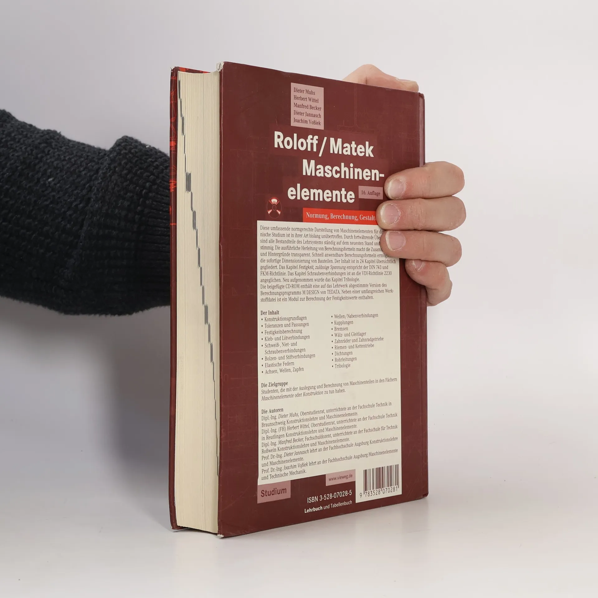 Diese umfassende normgerechte Darstellung von Maschinenelementen für den Unterricht ist in ihrer Art bislang unübertroffen. Durch fortwährende Überarbeitung sind alle Bestandteile des Lehrsystems ständig auf dem neuesten Stand und in sich stimmig. Die ausführliche Herleitung von Berechnungsformeln macht die Zusammenarbeit und Hintergründe transparent. Schnell anwendbare Berechnungsformeln ermöglichen die sofortige Dimensionierung von Bauteilen. Der um das Kapitel Tribologie erweiterte Inhalt ist in 24 Kapitel übersichtlich gegliedert. Dem Lehrbuch ist eine CD beigegeben. Sie enthält die Studienversion der marktführenden Berechnungssoftware MDesign von T-Data. Bitte beachten Sie unsere zusätzlichen Hinweise und Hilfen unter www.roloff-matek.de.