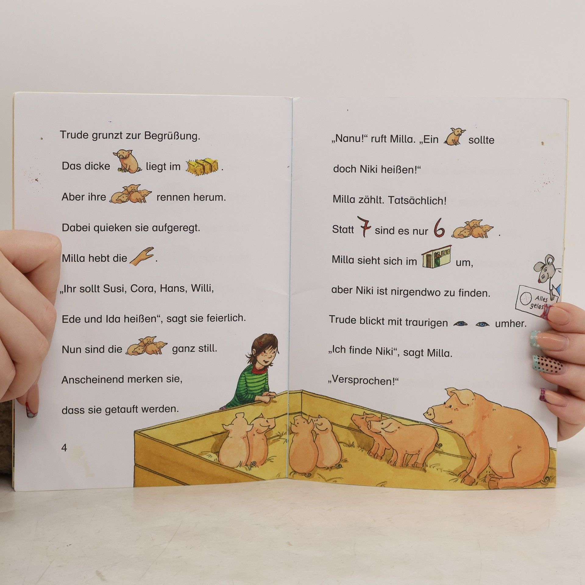 Milla besucht Oma auf dem Bauernhof. Das Schwein Trude hat Ferkel bekommen. Und Milla darf ihnen Namen geben! Aber da fehlt doch eins ... wo ist das kleine Ferkel? Eine fröhliche Bauernhof-Geschichte für Leseanfänger.