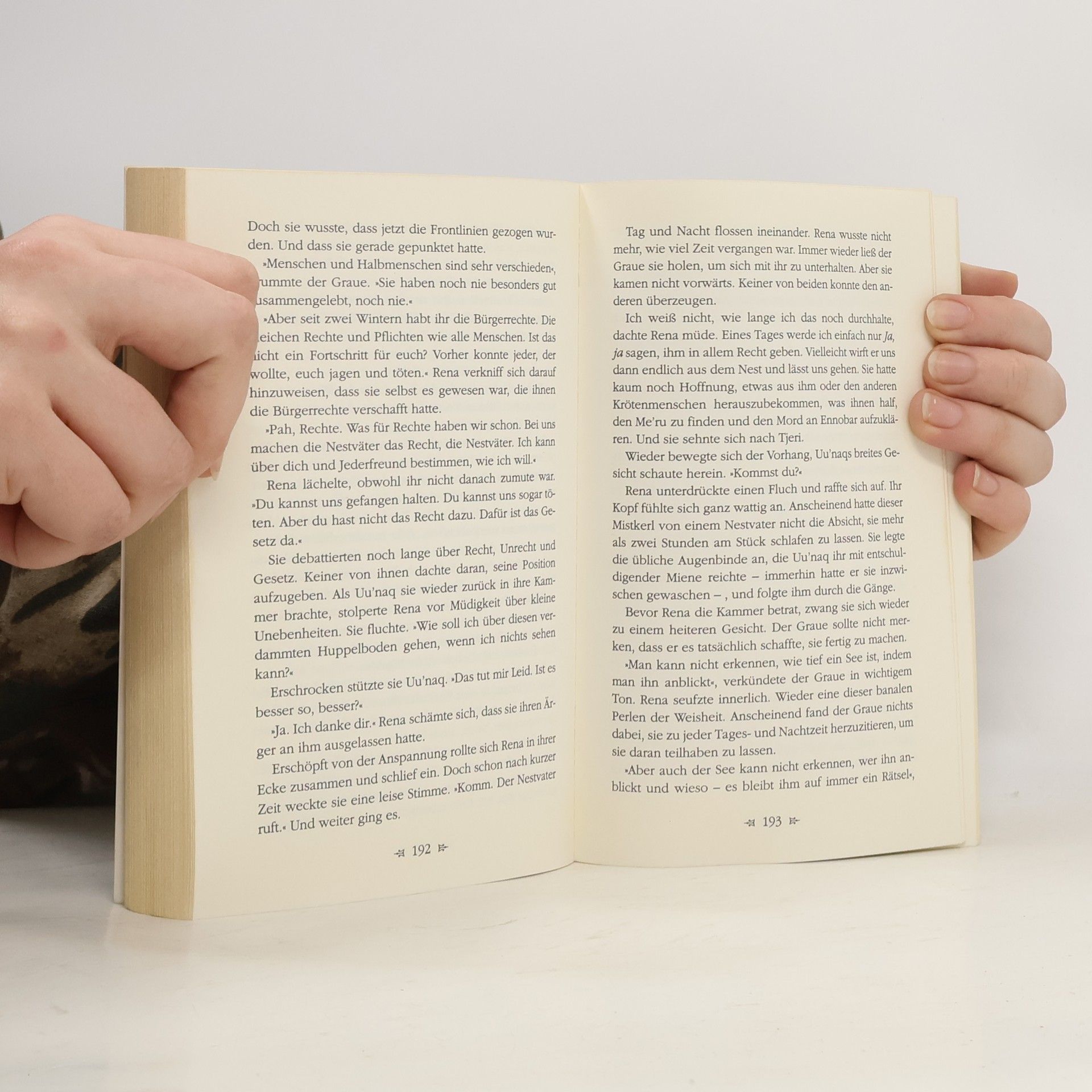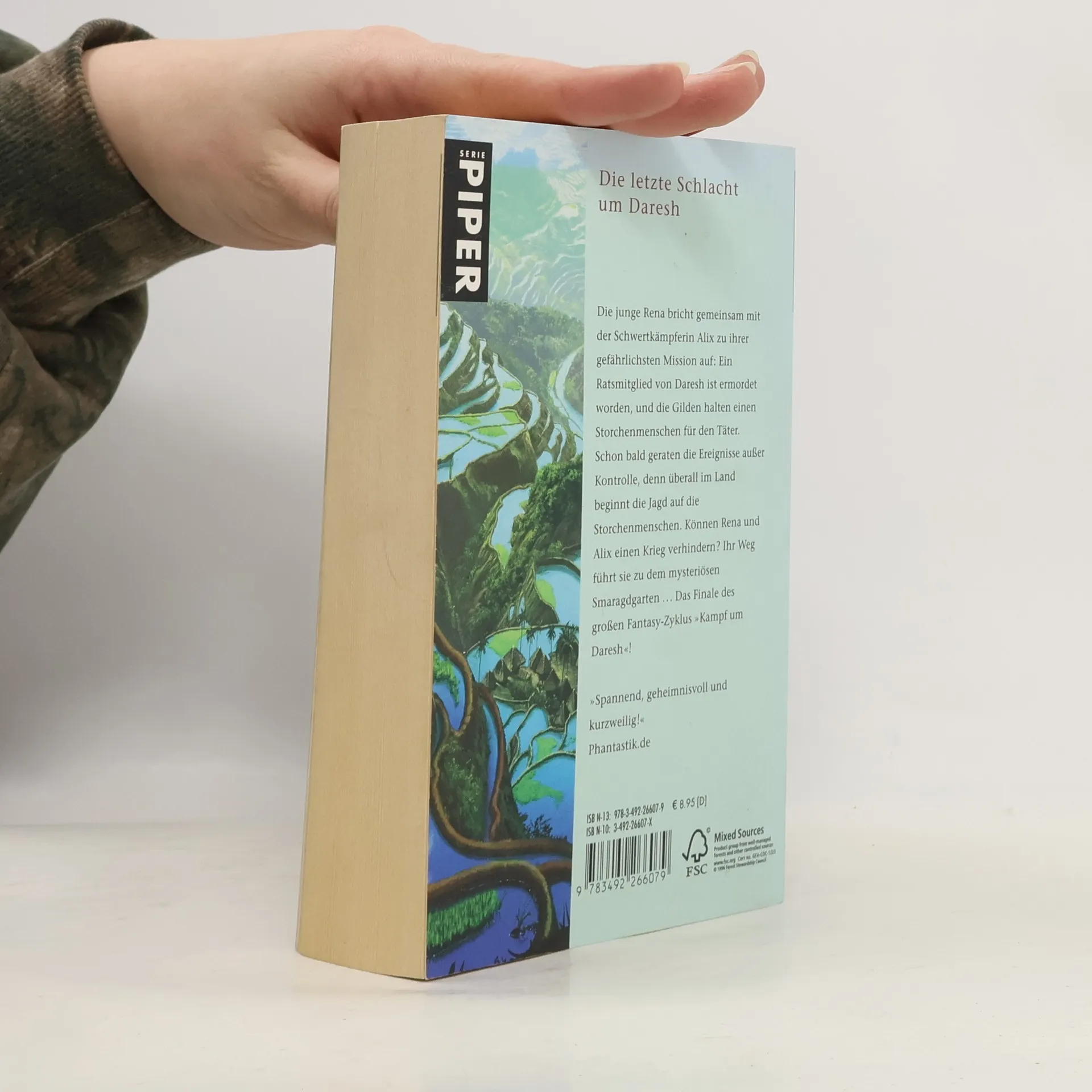 Die jugen Rena bricht gemeinsam mit der Schwertkämpferin Alix zu ihrer gefährlichsten Mission Ein Ratsmitglied von Daresh ist ermordet worden, und die Gilden halten einen Storchemenschen für den Täter. Schon bald geraten die Ereignisse außer Kontrolle, denn überall im Land beginnt die Jagd auf dei Storchenmenschen. Können Rena und Alix einen Krieg verhindern? Ihr Weg führt sie zu dem mysteriösen Smaragdgarten...