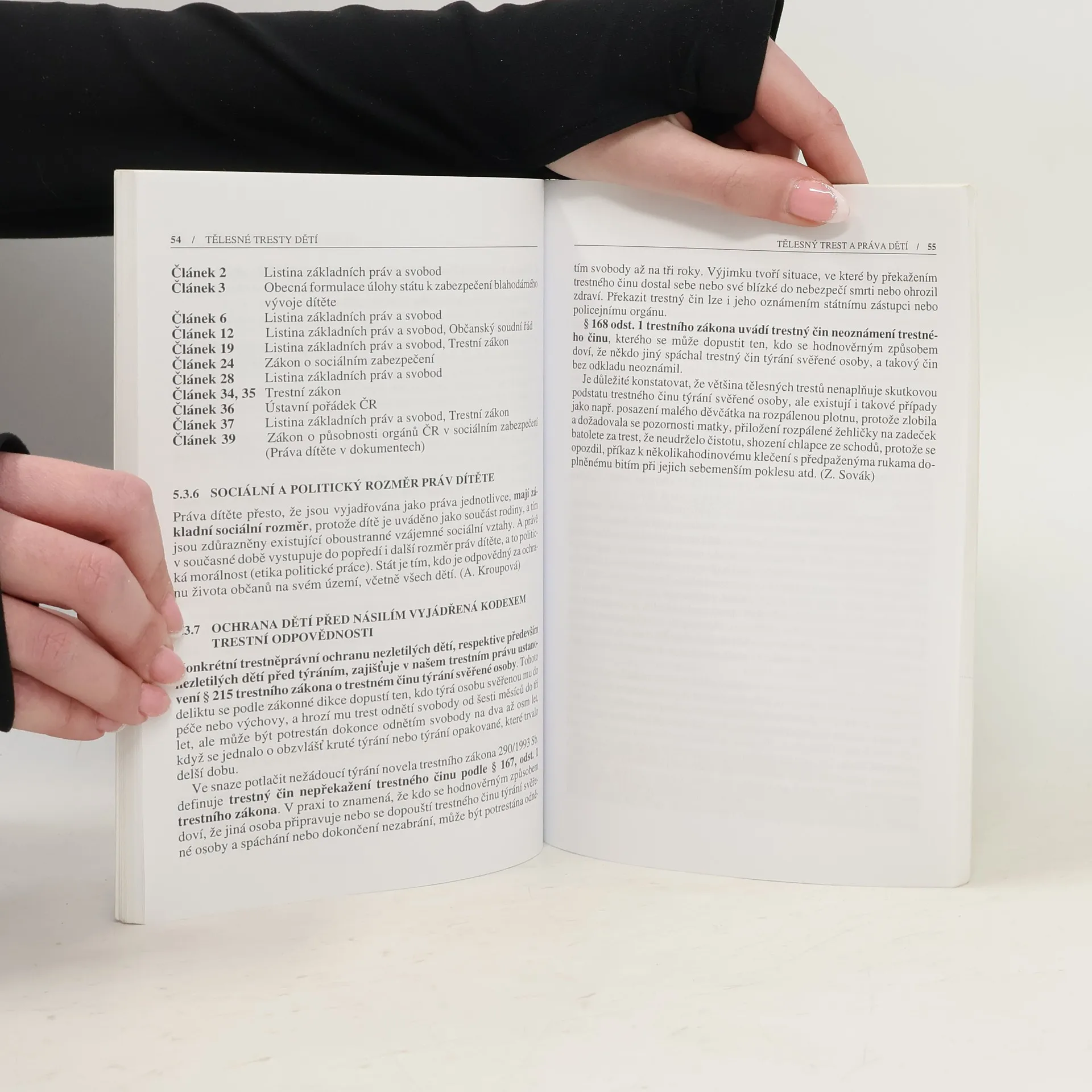 Definice, popis, následky Alarmující studie o tělesném trestání dětí, které je stále rozšířeno u nás i ve světě, a jeho zhoubných následcích. Tělesné tresty dětí jsou stále rozšířeny na celém světě, včetně západních zemí. Týkají se kojenců i školáků. Dopouštějí se jich rodiče i učitelé, a to přestože je známo, že fyzické trestání jako výchovný prostředek není účinné, naopak negativně ovlivňuje vývoj a další budoucnost dítěte. Osoby trpící tělesnými tresty v dětství projevují zvýšené sklony k agresivitě, domácímu násilí a v neposlední řadě samy v dospělosti používají tělesných trestů při výchově svých dětí. Tělesné tresty jsou proto považovány za jednu z příčin nárůstu násilí v dnešním světě. Varující kniha české autorky se opírá o řadu českých i světových studií, statistik a výzkumů. Na jejich základě dokládá patologické účinky fyzických trestů na psychice dítěte. Odvolává se na práva dítěte, uvádí i konkrétní příklady ze života, dokazující neutěšený stav v této oblasti (nejedná se o žádné rozvojové země, ale o civilizovaný svět, uvedené příklady popisují přímo situaci v ČR).