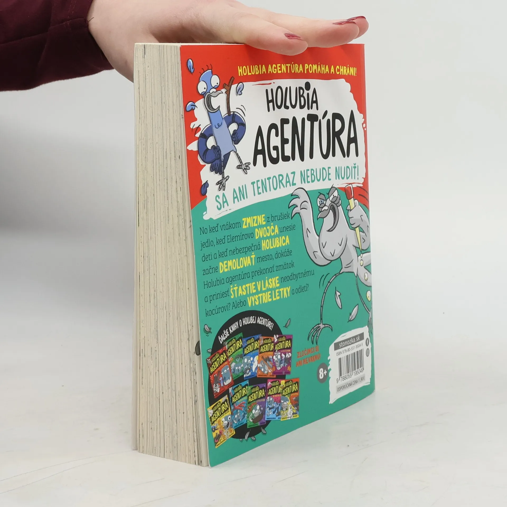 Poznáte Holubiu agentúru? Je to jednotka neúnavných bojovníkov proti zločinu.Ak sa vám zdá, že holuby sa občas správajú zvláštne, nemýlite sa. Sledujú totiž rôzne záškodnícke živly, odvážne čelia nebezpečenstvu a zločinci si ani nevrknú!Holubia agentúra sa ani tentoraz nebude nudiť! No keď vtákom zmizne z brušiek jedlo, keď Elemírovo dvojča unesie deti a keď nebezpečná holubica začne demolovať mesto, dokáže Holubia agentúra prekonať zmätok a priniesť šťastie v láske neodbytnému kocúrovi? Alebo vystrie letky a odletí? Dozviete sa v jedenástej časti bláznivej série s kriminálnou zápletkou.Pre čitateľov od 8 rokov