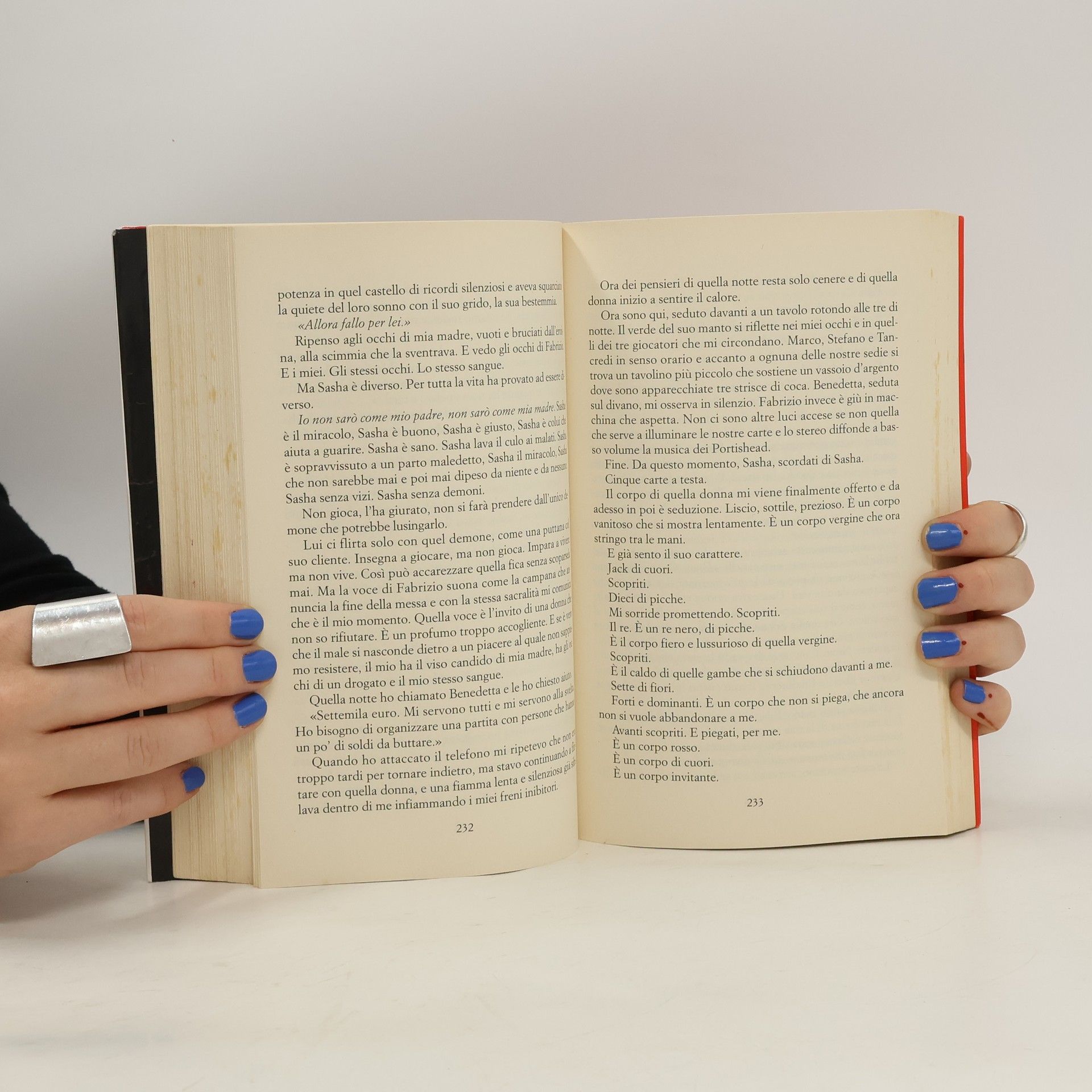 SASHA. Capelli impettinabili, un passato da perdonare, una grande voglia di vivere, un amore impossibile, la tentazione di farla finita, il desiderio di perdersi per la prima volta. NICOLE. Una rivoluzione lontana, un marito troppo premuroso, una bara di vetro in cui vive da dieci anni, la routine che la fa navigare a vista e, oltre l'orizzonte, la voglia di tornare a vivere. BENEDETTA. Un corpo scolpito, il rischio sempre accanto, la notte consumata in feste estreme, un segreto che annulla ogni sentimento, la voglia di bruciare tutto e subito, il bisogno di un amore. OLIVA. Un incidente d'auto, una clinica veterinaria, una grande casa sconosciuta, una notte di troppo al tavolo da poker, e un amico, vero.
