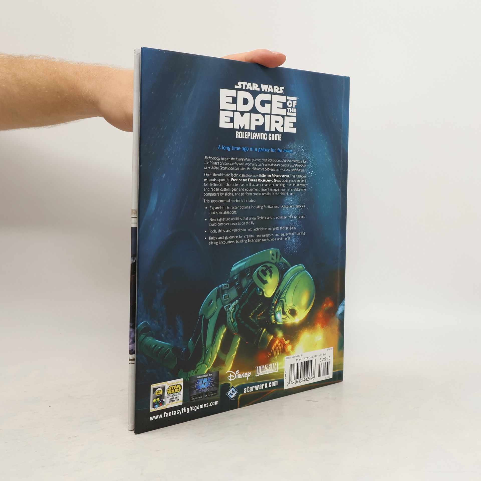 From hyperdrive and ion cannons to protocol droids and medical devices, Technicians keep the Star Wars™ galaxy running. These creative, resourceful individuals are willing to work hard and get their hands dirty in physically and mentally demanding tasks. It is high time that Technicians get some new tools for their trade. Therefore, we are proud to announce the upcoming release of Special Modifications, a Technicians’ sourcebook for the Star Wars®: Edge of the Empire™ roleplaying game.