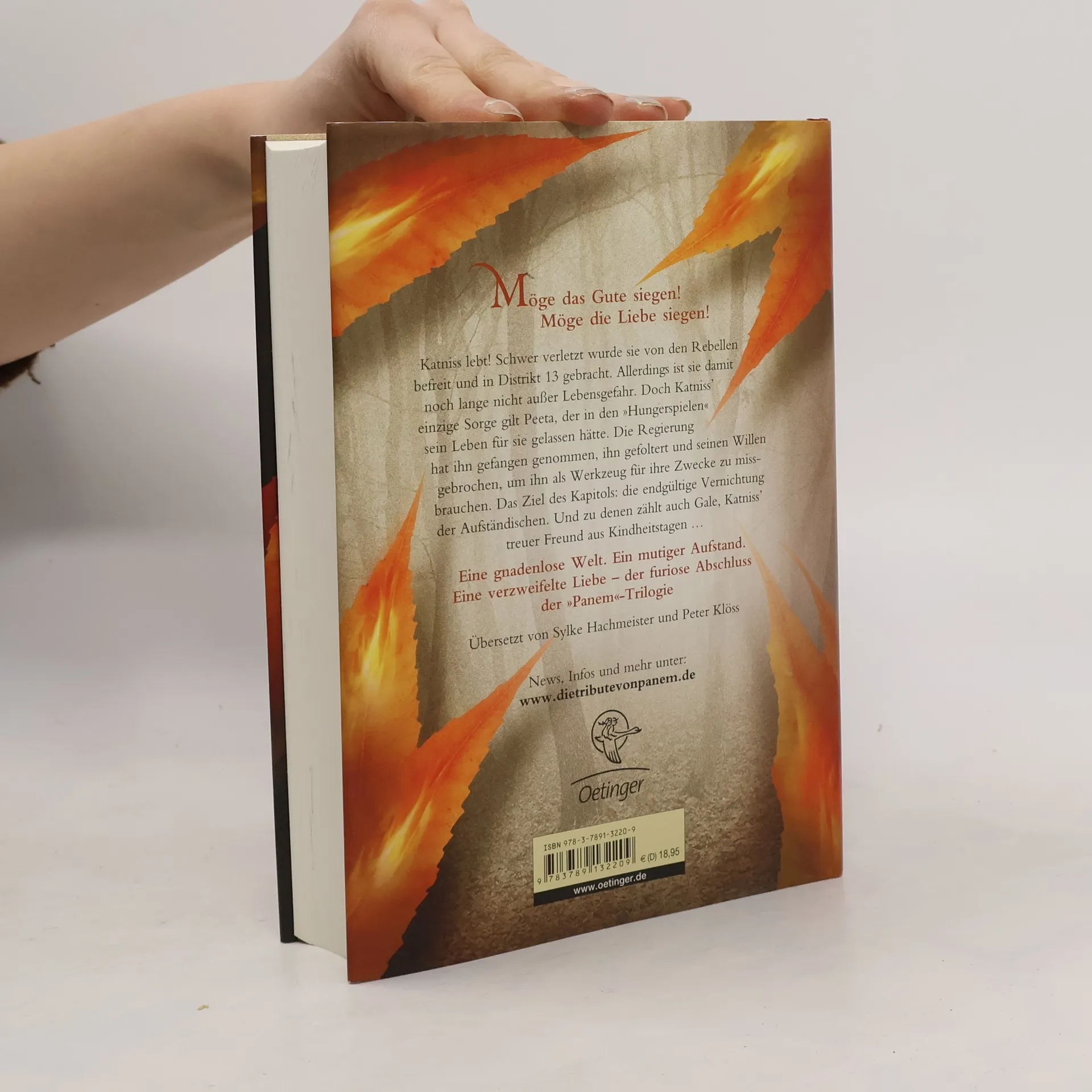 An alternative cover edition for this ISBN can be found here . Schwer verletzt wurde Katniss von den Rebellen befreit und in Distrikt 13 gebracht. Doch ihre einzige Sorge gilt Peeta, der dem Kapitol in die Hände gefallen ist. Die Regierung setzt alle daran, seinen Willen zu brechen, um ihn als Waffe gegen die Rebellen einsetzen zu können. Gale hingegen kämpft weiterhin an der Seite der Aufständischen, und das, zu Katniss' Schrecken, ohne Rücksicht auf Verluste. Als sie merkt, dass auch die Rebellen versuchen, sie für ihre Ziele zu missbrauchen, wird ihr klar, dass sie alle nur Figuren in einem perfiden Spiel sind. Es scheint ihr fast unmöglich, die zu schützen, die sie liebt.