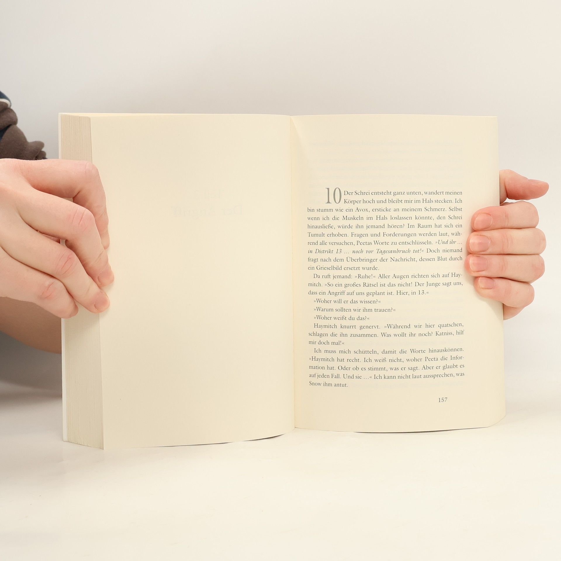 Schwer verletzt wurde Katniss von den Rebellen befreit und in Distrikt 13 gebracht. Doch ihre einzige Sorge gilt Peeta: Die Regierung setzt alles daran, seinen Willen zu brechen, um ihn als Waffe gegen die Rebellen einzusetzen. Gale hingegen kämpft weiterhin an der Seite der Aufständischen, und das ohne Rücksicht auf Verluste. Als Katniss merkt, dass auch die Rebellen versuchen, sie für ihre Ziele zu missbrauchen, wird ihr klar, dass sie alle nur Figuren in einem perfiden Spiel sind …
