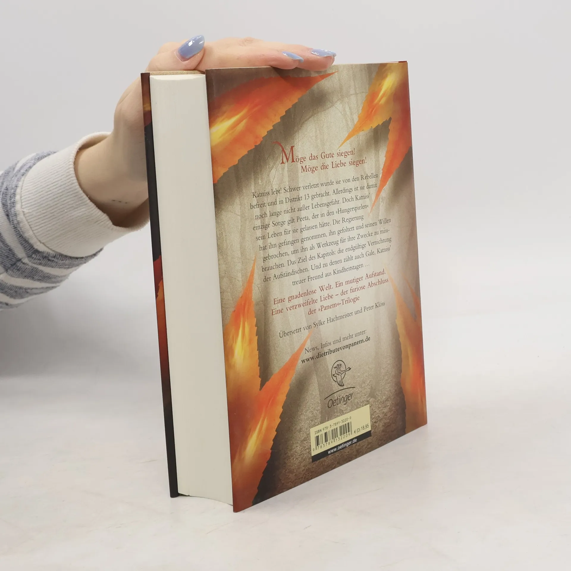 An alternative cover edition for this ISBN can be found here . Schwer verletzt wurde Katniss von den Rebellen befreit und in Distrikt 13 gebracht. Doch ihre einzige Sorge gilt Peeta, der dem Kapitol in die Hände gefallen ist. Die Regierung setzt alle daran, seinen Willen zu brechen, um ihn als Waffe gegen die Rebellen einsetzen zu können. Gale hingegen kämpft weiterhin an der Seite der Aufständischen, und das, zu Katniss' Schrecken, ohne Rücksicht auf Verluste. Als sie merkt, dass auch die Rebellen versuchen, sie für ihre Ziele zu missbrauchen, wird ihr klar, dass sie alle nur Figuren in einem perfiden Spiel sind. Es scheint ihr fast unmöglich, die zu schützen, die sie liebt.