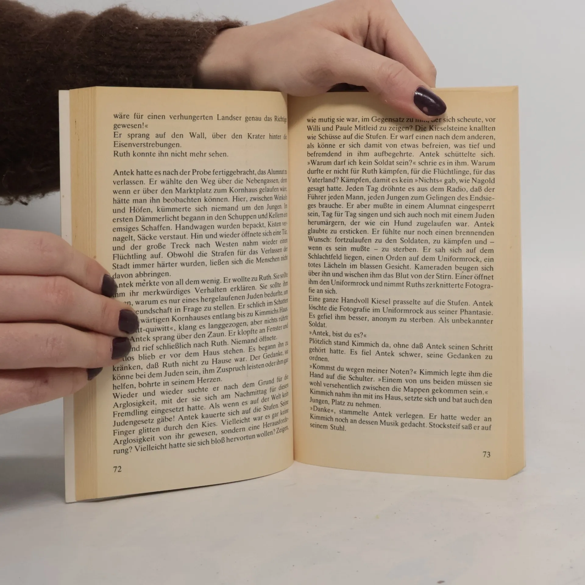 In den letzten Kriegstagen findet eine Clique von Jugendlichen in einem zerbombten Haus ein Nahrungsmitteldepot. Sie verteidigen diesen lebensrettenden Schatz gegen eventuelle Mitwisser. Doch schon bald wird ihr Geheimnis von jemand anderem entdeckt. Die Jungen müssen sich entscheiden, ob sie ihn anzeigen oder verstecken wollen: Abiram, Jude, 15 Jahre alt, aus dem Konzentrationslager entflohen. Für ihr Gesamtwerk erhielt die Autorin den Schiller-Preis der Stadt Mannheim.