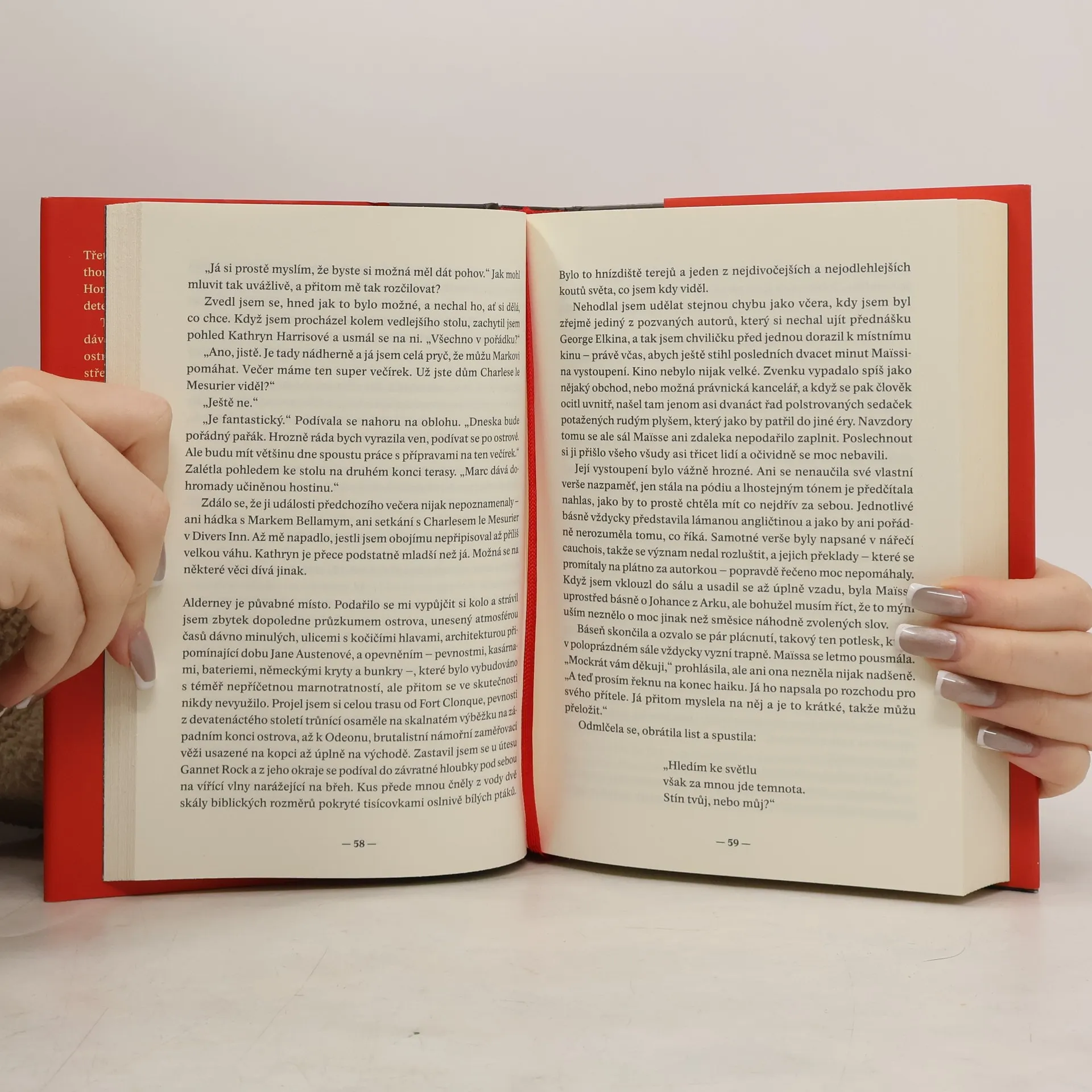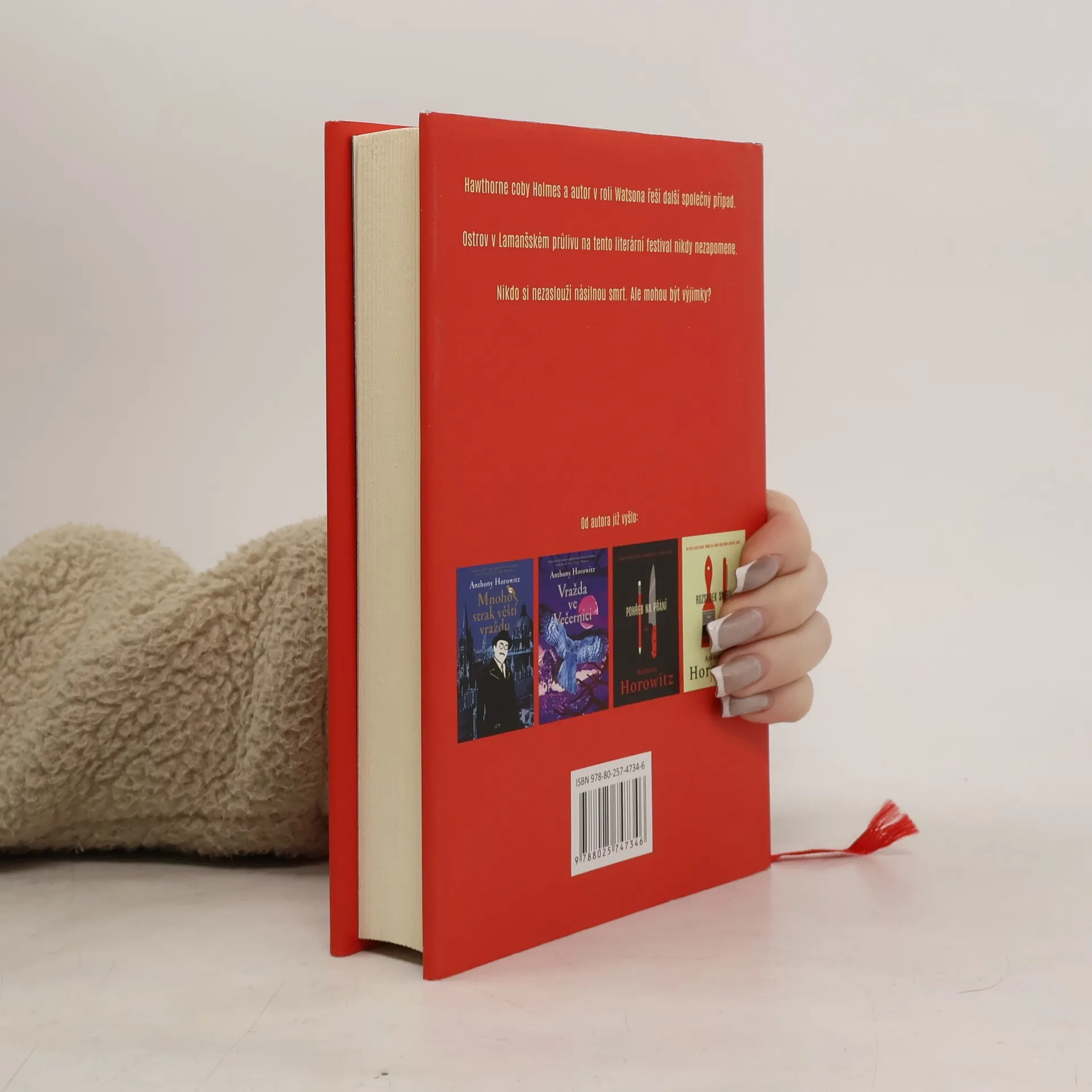 Třetí případ bývalého inspektora Daniela Hawthorna a jeho nedovtipného parťáka Anthonyho Horowitze, který má za úkol napsat o něm další detektivní román. Tentokrát se tito dva „ne zrovna přátelé“ vydávají na literární festival konaný na idylickém ostrově Aldernay v Kanálu La Manche. Kupodivu se brzy ocitnou ve středu vyšetřování vraždy v izolovaném místě, odkud se nedá jen tak dostat a vrah je stále někde na ostrově. O život byl připraven místní velkopodnikatel a mezi podezřelými jsou mimo jiné francouzská básnířka, autor knižních kuchařek, slepé médium nebo historik specializující se na okupaci Normanských ostrovů. Zábavný detektivní příběh plný omylů a nápověd je i skvělou literární a společenskou satirou.