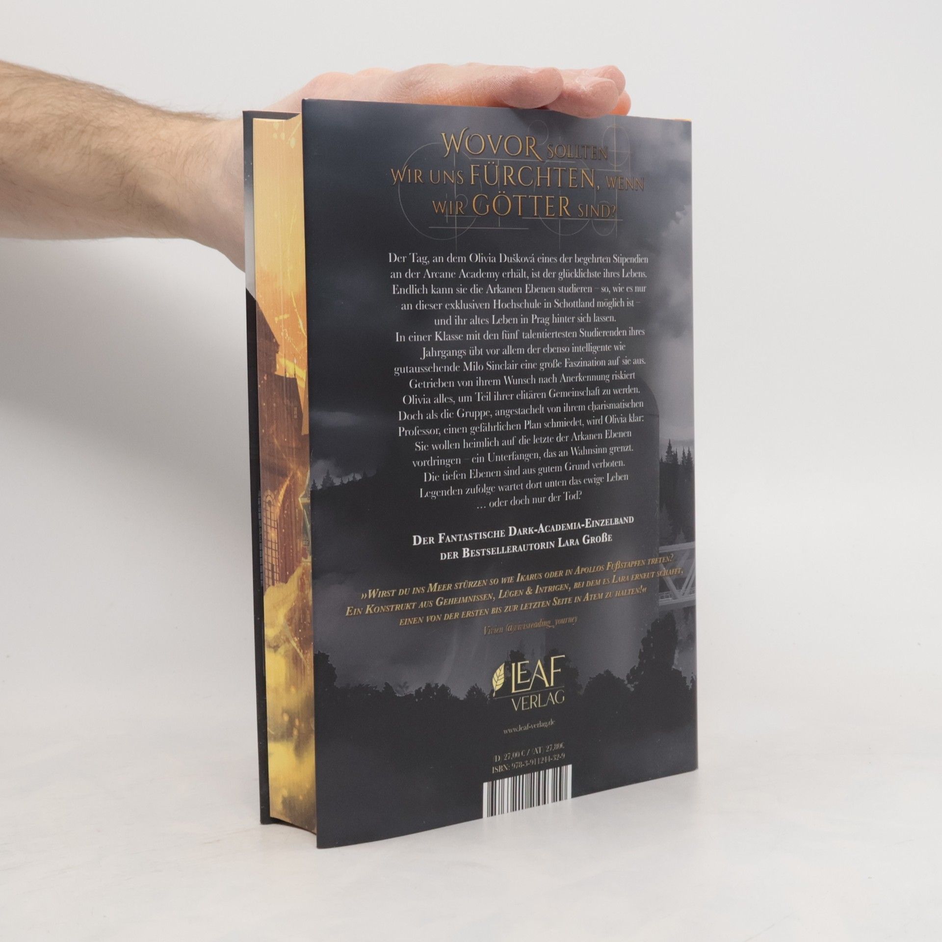 Die fantastische Dark-Academia-Sensation der Bestsellerautorin Lara Große - Veredeltes Hardcover mit Cutout im Schutzumschlag und Blick auf den illustrierten Bezug darunter - Illustrierter Vorsatz - Farbschnitt in der ersten Auflage Dieses Buch gibt es in zwei Ausstattungen: Mit und ohne Farbschnitt. Leider können wir keinen Farbschnitt garantieren. Und wovor sollten wir uns noch fürchten, wenn wir Götter sind? Der Tag, an dem Olivia Dušková eines der begehrten Stipendien an der Arcane Academy erhält, ist der glücklichste ihres Lebens. Endlich kann sie die Arkanen Ebenen studieren – so, wie es nur an dieser exklusiven Hochschule in Schottland möglich ist – und ihr altes Leben in Prag hinter sich lassen. In einer Klasse mit den fünf talentiertesten Studierenden ihres Jahrgangs übt vor allem der ebenso intelligente wie gutaussehende Milo Sinclair eine große Faszination auf sie aus. Getrieben von ihrem Wunsch nach Anerkennung riskiert Olivia alles, um Teil ihrer elitären Gemeinschaft zu werden. Doch als die Gruppe, angestachelt von ihrem charismatischen Professor, einen gefährlichen Plan schmiedet, wird Olivia klar: Sie wollen heimlich auf die letzte der Arkanen Ebenen vordringen – ein Unterfangen, das an Wahnsinn grenzt. Die tiefen Ebenen sind aus gutem Grund verboten. Legenden zufolge wartet dort unten das ewige Leben … oder doch nur der Tod?