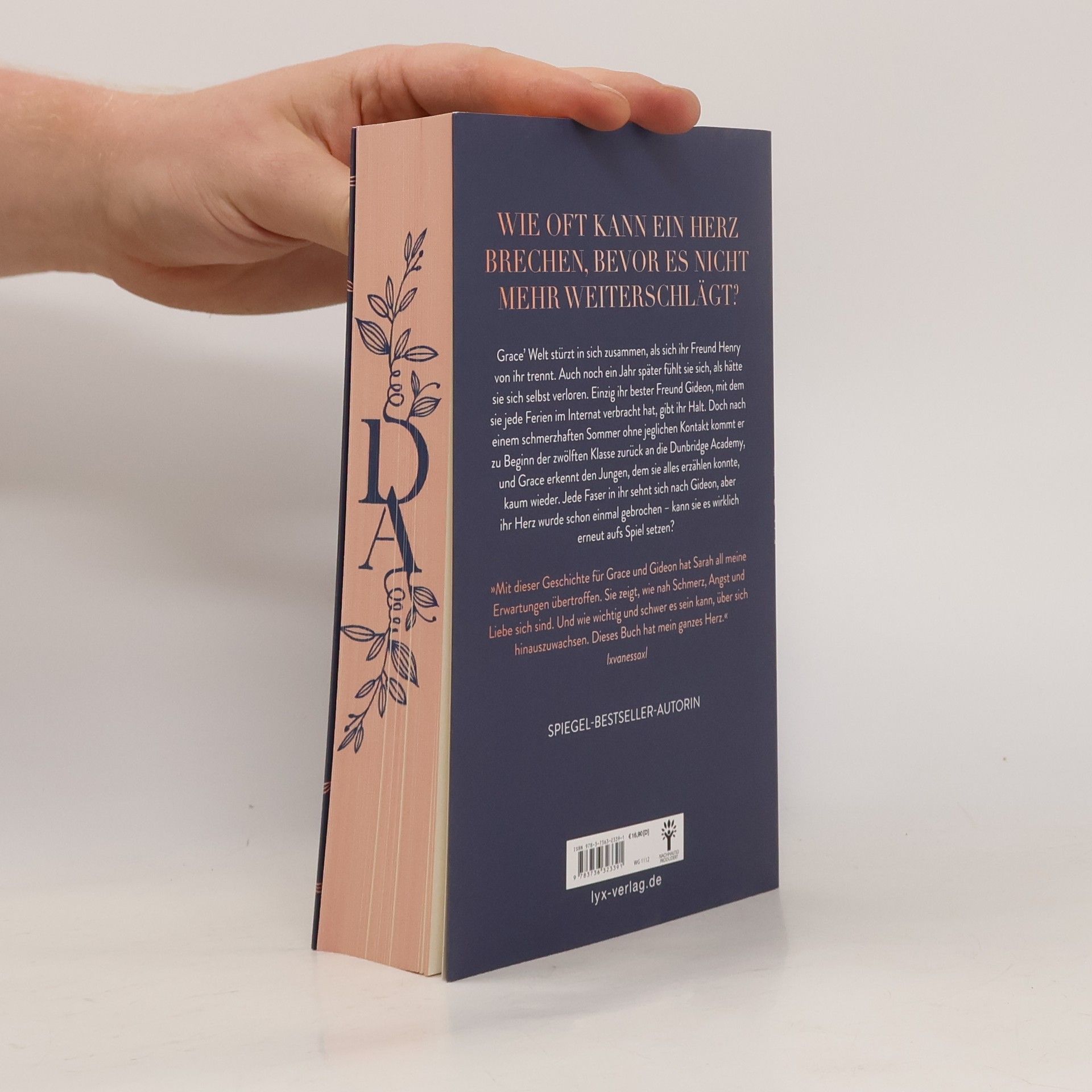 Wie oft kann ein Herz brechen, bevor es nicht mehr weiterschlägt? Grace‘ Welt stürzt in sich zusammen, als sich ihr Freund Henry von ihr trennt. Auch ein Jahr später fühlt sie sich, als hätte sie sich selbst verloren. Einzig ihr bester Freund Gideon, mit dem sie jede Ferien im Internat verbracht hat, gibt ihr Halt. Doch nach einem schmerzhaften Sommer ohne jeglichen Kontakt kommt er zu Beginn der zwölften Klasse zurück an die Dunbridge Academy, und Grace erkennt den Jungen, dem sie alles erzählen konnte, kaum wieder. Jede Faser in ihr sehnt sich nach ihrem Seelenverwandten, aber ihr Herz wurde schon einmal gebrochen - kann sie es wirklich erneut aufs Spiel setzen? »Mit dieser Geschichte für Grace und Gideon hat Sarah all meine Erwartungen übertroffen. Sie zeigt, wie nah Schmerz, Angst und Liebe sich sind. Und wie wichtig und schwer es sein kann, über sich hinauszuwachsen. Dieses Buch hat mein ganzes Herz.« lxvanessaxl Welcome back an der Dunbridge Academy: die Geschichte von Grace & Gideon Dieses Buch gibt es in zwei Versionen: mit und ohne Farbschnitt. Sobald die Farbschnitt-Ausgabe ausverkauft ist, liefern wir die Ausgabe ohne Farbschnitt aus.