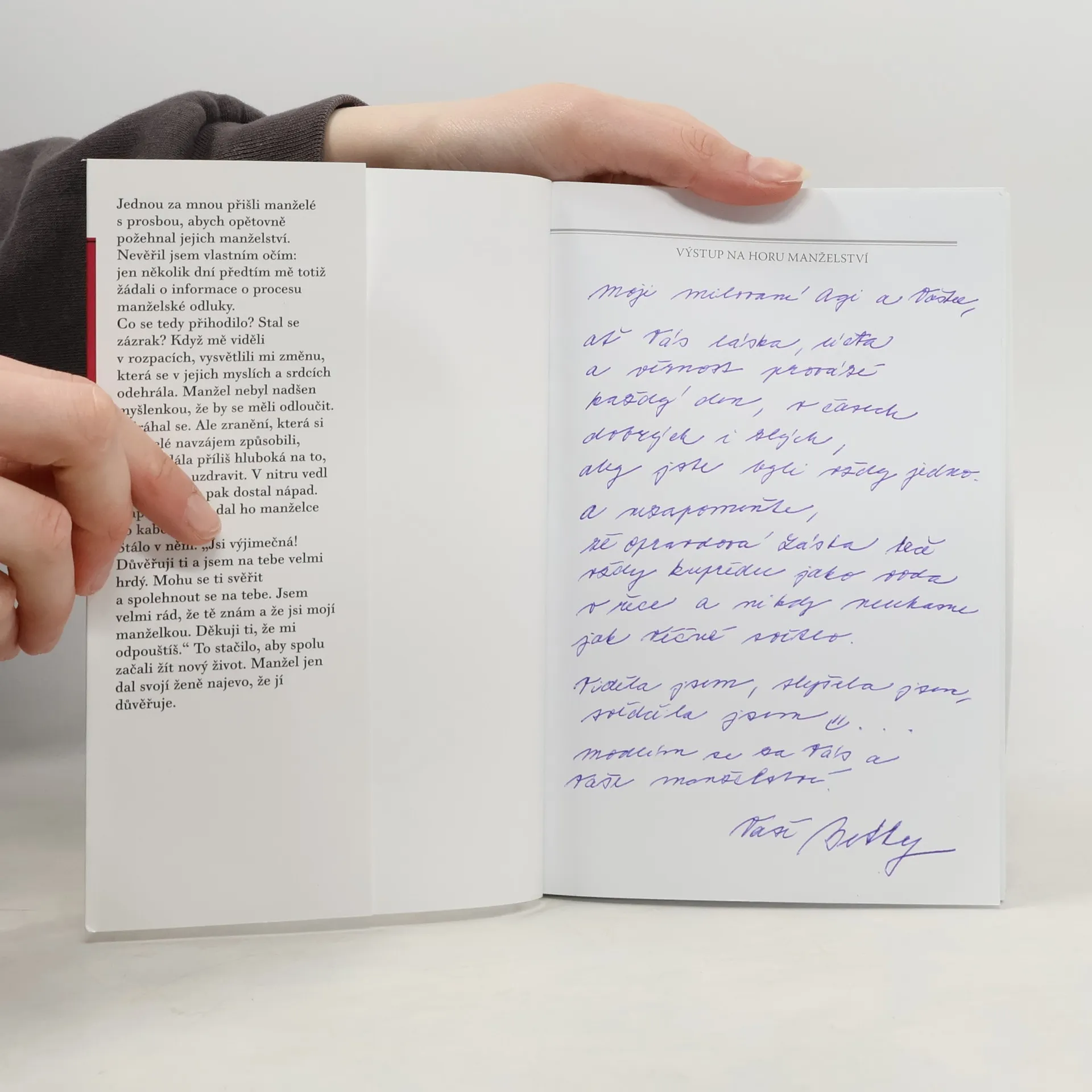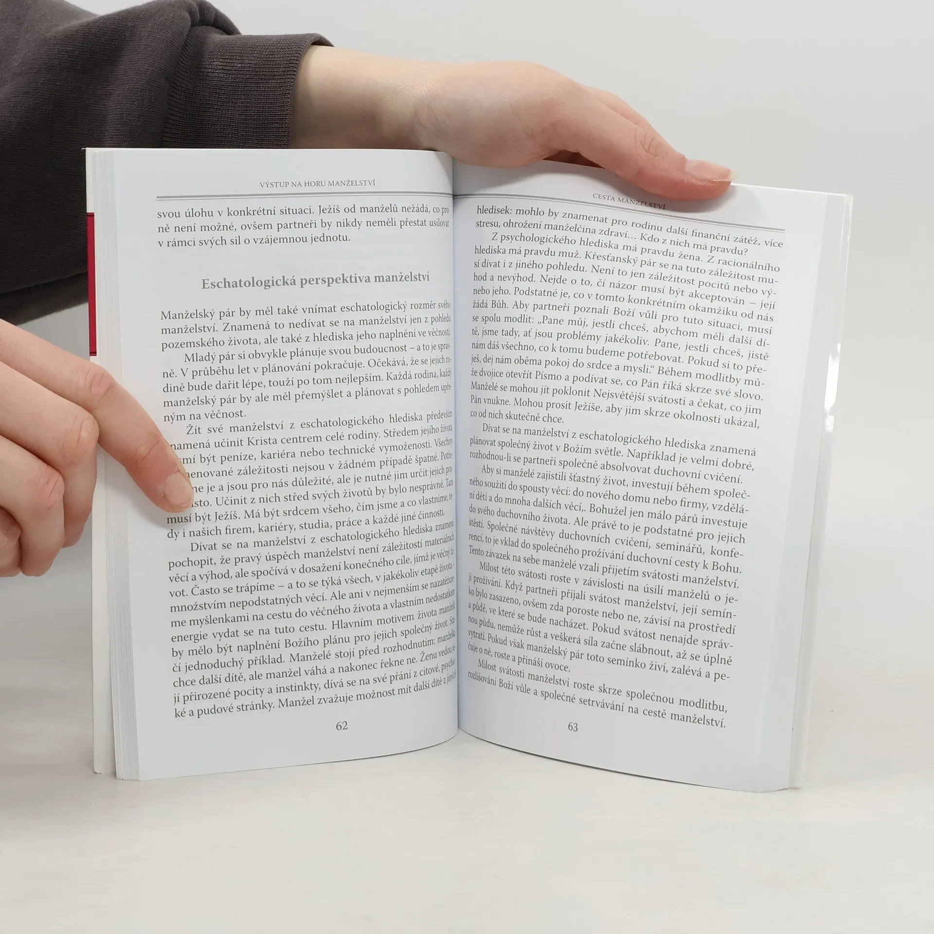 Hora manželství může odstrašovat ty, kdo se bojí výšek a nedokážou ocenit schopnost sebedarování. Je ji však možné zdolat láskou vycházející od Boha, která zve do živého vztahu s ním i s naším partnerem. Kniha, která vznikla na základě přednášek Eliase Velly o manželství, nabízí čtenářům podstatné rady pro zdravý manželský život. V první části autor ukazuje autentický obraz manželství v kontextu svátostného života. Druhá část knihy konfrontuje čtenáře se současnými problémy, jako jsou cizoložství, poruchy sexuální identity, odluka, rozvod atd., a přináší řešení těm, kteří usilí o pokoj, uzdravení a stálost ve svých vztazích.