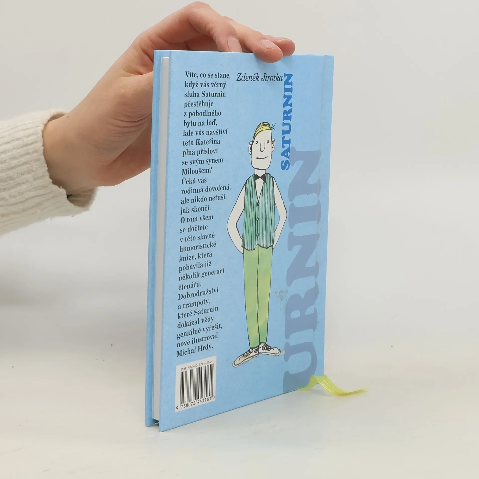 Nejlepší průpravu ke zdravé životní filozofii vám poskytne sluha Saturnin, který s vtipem čelí přetvářce tety Kateřiny a všem katastrofám při rodinné dovolené u dědečka odříznutého povodní od civilizace. Další vydání slavné humoristické knihy, která pobavila již několik generací čtenářů, ilustroval Michal Hrdý. Na jejích stránkách se dovíte, co se stane, když vás věrný sluha Saturnin přestěhuje z pohodlného bytu na loď, kde vás navštíví teta Kateřina plná přísloví se svým synem Miloušem, a co se přihodí u dědečka, jehož dům je povodní načas odříznut od civilizace. Všem nepříjemnostem, katastrofám i přetvářce tety Kateřiny naštěstí umí s jiskřivým vtipem čelit Saturnin. Jeho schopnosti jsou téměř geniální, a přitom je to tak prosté, jak píše o Saturninovi v dopise dědeček: "V bláznivých nápadech toho chlapíka je kus poezie, jeho humor, fantazie a podivuhodné myšlenkové přemety dovedou udělat detektivku z jízdního řádu a člověk cítí, že nemusil tak zestárnout, kdyby si byl nezapomněl hrát."