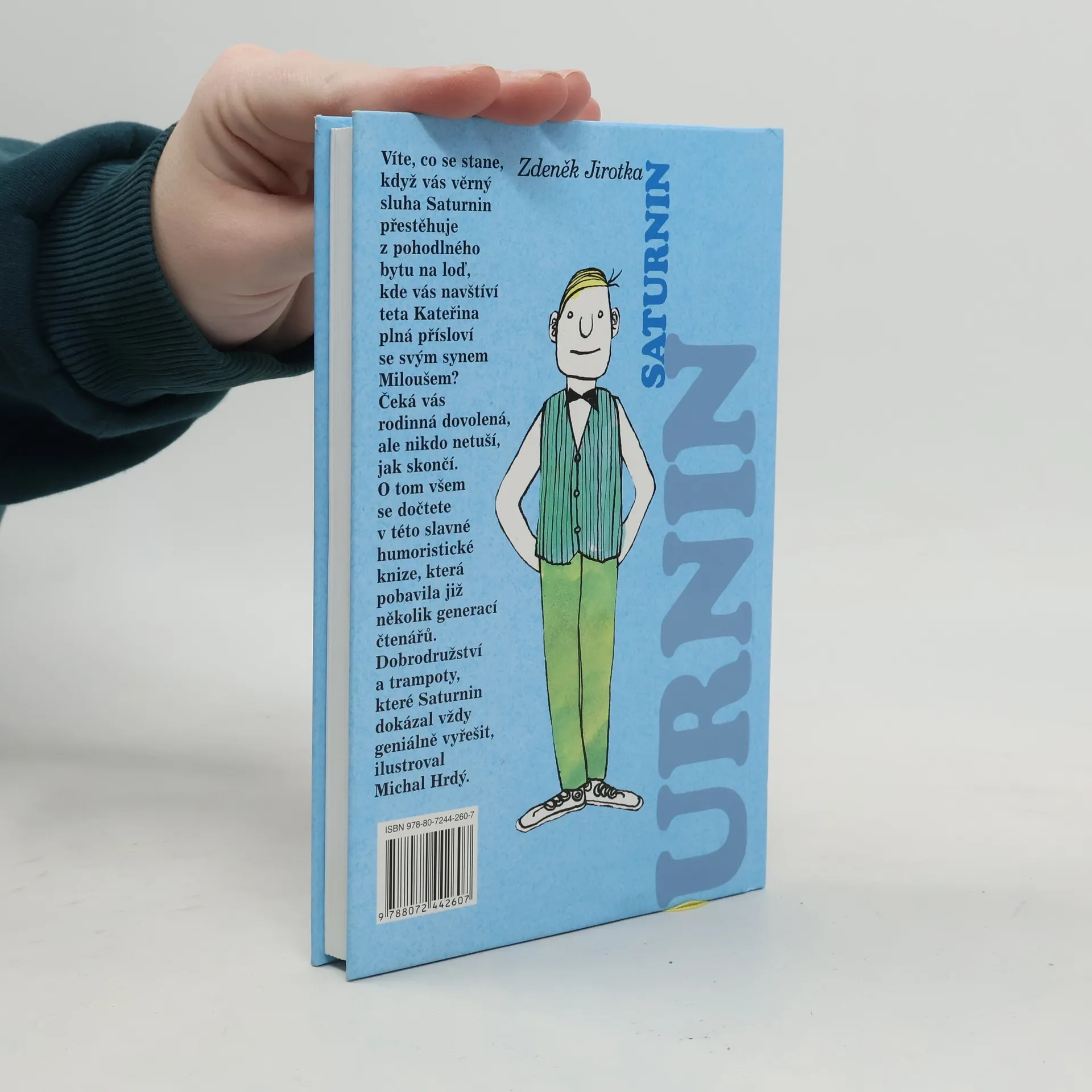 Nejlepší průpravu ke zdravé životní filozofii vám poskytne sluha Saturnin, který s vtipem čelí přetvářce tety Kateřiny a všem katastrofám při rodinné dovolené u dědečka odříznutého povodní od civilizace. Nové vydání slavné humoristické knihy, která pobavila již několik generacíčtenářů, ilustroval Michal Hrdý. Na jejích stránkách se dovíte, co se stane, když vás věrný sluha Saturnin přestěhuje z pohodlného bytu na loď, kde vás navštíví teta Kateřina plná přísloví se svým synem Miloušem, a co se přihodí u dědečka, jehož dům je povodní načas odříznut od civilizace. Všem nepříjemnostem, katastrofám i přetvářce tety Kateřiny naštěstí umí s jiskřivým vtipem čelit Saturnin. Jeho schopnosti jsou téměř geniální, a přitom je to tak prosté, jak píše o Saturninovi v dopise dědeček: "V bláznivých nápadech toho chlapíka je kus poezie, jeho humor, fantazie a podivuhodné myšlenkové přemety dovedou udělat detektivku z jízdního řádu a člověk cítí, že nemusil tak zestárnout, kdyby si byl nezapomněl hrát." Dotisk v r. 2011.