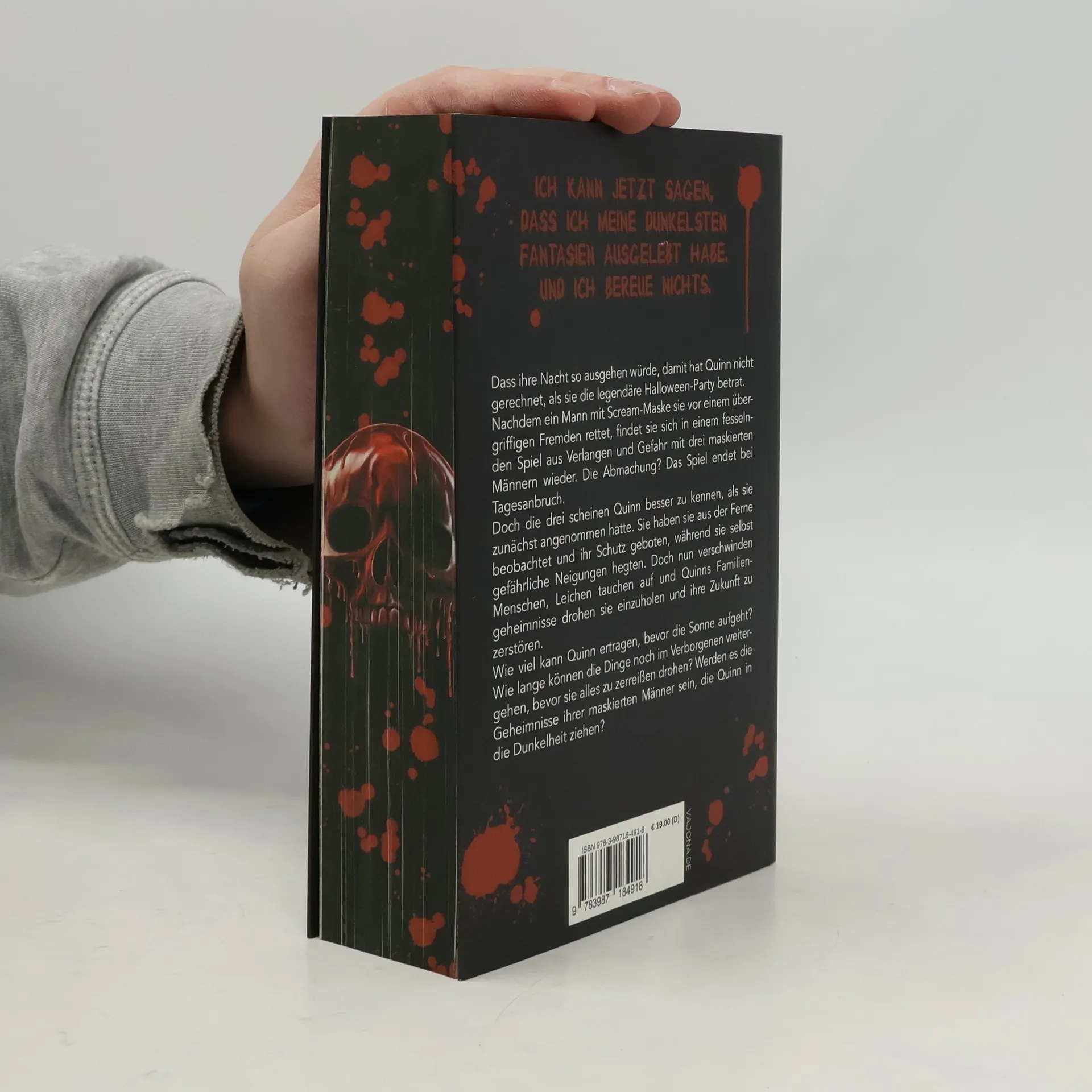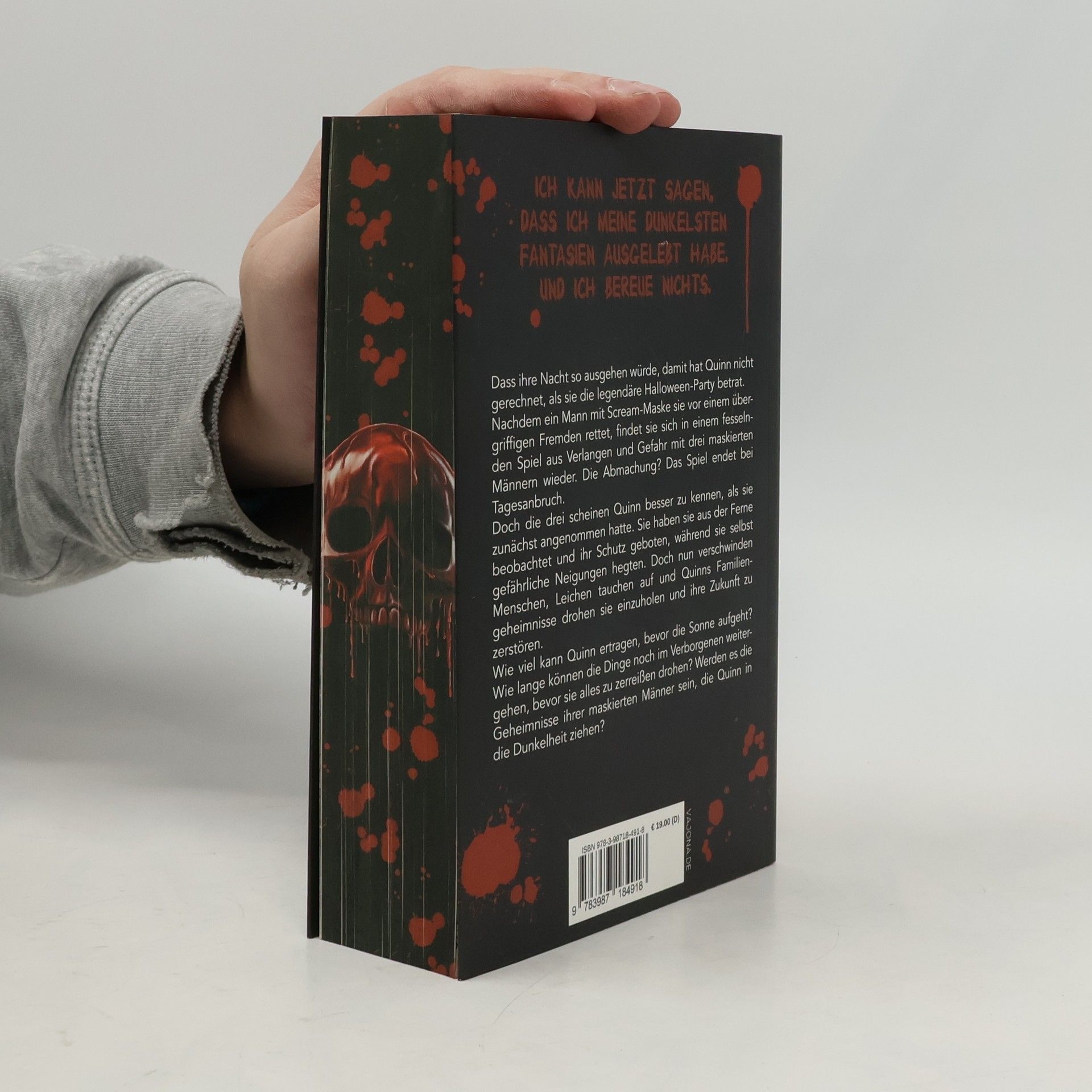 Dass ihre Nacht so ausgehen würde, damit hat Quinn nicht gerechnet, als sie die legendäre Halloween-Party betrat. Nachdem ein Mann mit Scream-Maske sie vor einem übergriffigen Fremden rettet, findet sie sich in einem fesselnden Spiel aus Verlangen und Gefahr mit drei maskierten Männern wieder. Die Abmachung? Das Spiel endet bei Tagesanbruch. Doch die drei scheinen Quinn besser zu kennen, als sie zunächst angenommen hatte. Sie haben sie aus der Ferne beobachtet und ihr Schutz geboten, während sie selbst gefährliche Neigungen hegten. Doch nun verschwinden Menschen, Leichen tauchen auf und Quinns Familiengeheimnisse drohen sie einzuholen und ihre Zukunft zu zerstören. Wie viel kann Quinn ertragen, bevor die Sonne aufgeht? Wie lange können die Dinge noch im Verborgenen weitergehen, bevor sie alles zu zerreißen drohen? Werden es die Geheimnisse ihrer maskierten Männer sein, die Quinn in die Dunkelheit ziehen?
