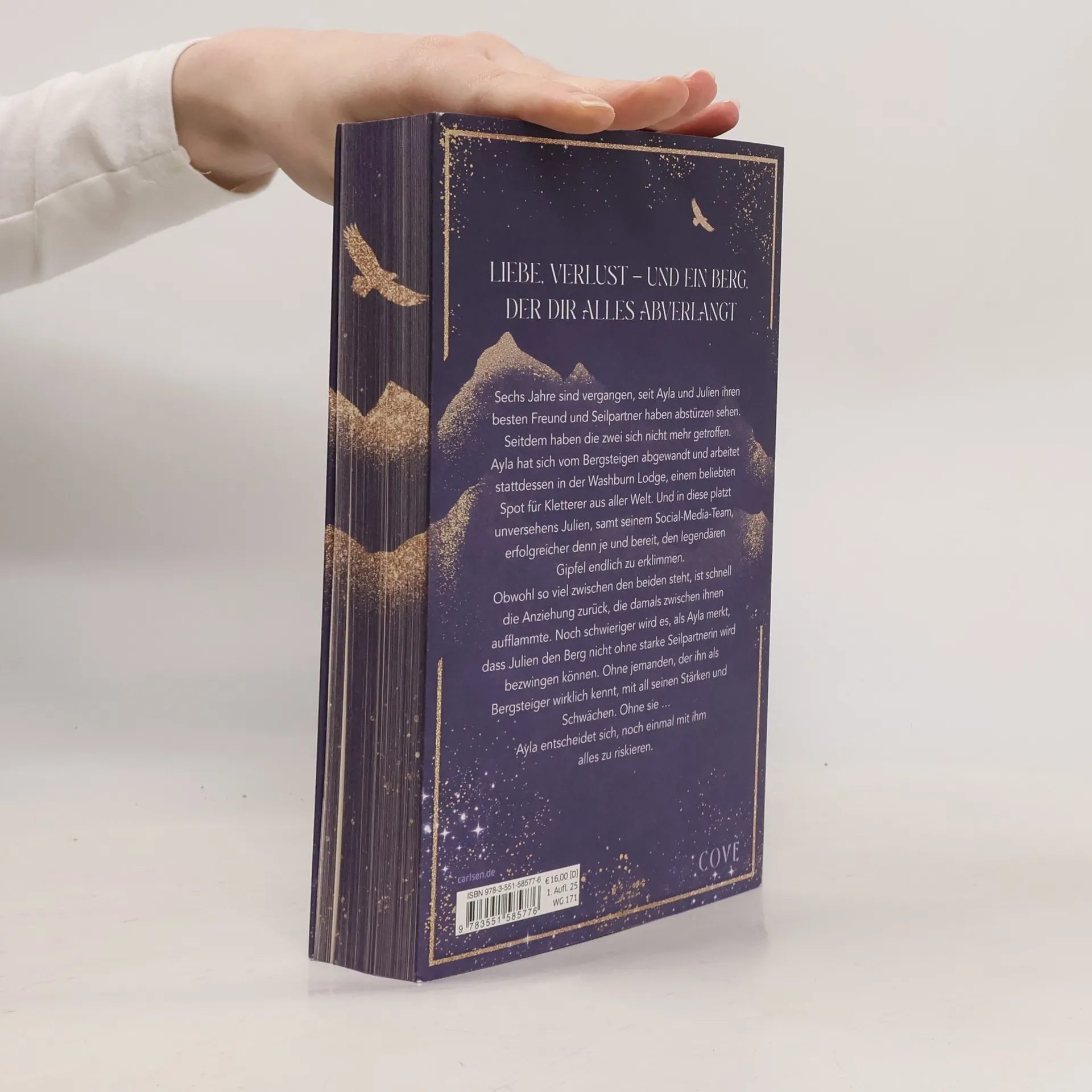 **Liebe, Verlust – und ein Berg, der dir alles abverlangt** Sechs Jahre sind vergangen, seit Ayla und Julien ihren besten Freund und Seilpartner haben abstürzen sehen. Seitdem haben sie sich nicht mehr getroffen. Ayla hat sich vom Bergsteigen abgewandt und leitet stattdessen eine Lodge für Kletterer aus aller Welt. Und in diese platzt unversehens Julien, samt Filmcrew und Agentin, erfolgreicher denn je und bereit, den legendären Gipfel endlich zu erklimmen. Obwohl so viel zwischen ihnen steht, ist schnell die Anziehung zurück, die damals zwischen ihnen aufflammte. Noch schwieriger wird es, als Ayla merkt, dass Julien den Berg nicht ohne eine starke Seilpartnerin wird bezwingen können. Ohne jemanden, der ihn als Bergsteiger wirklich kennt. Ohne sie … Ayla entscheidet sich, noch einmal mit ihm alles zu riskieren. Eine unter die Haut gehende New Adult Romance über Mut, Liebe und die Kraft, die Schatten der Vergangenheit zu überwinden. »Niemand lässt mich beim Lesen so viele Emotionen durchleben wie Carina Wilde.« Romance-Autorin Sarah Saxx //Dies ist der erste Band der knisternden Mountain Romance-Dilogie »Velvet Mountains«. Alle Bände der Buchreihe: -- Velvet Mountains 1: Risk With Me -- Velvet Mountains 2: Rise With Me// Die beiden Bände sind unabhängig voneinander lesbar. Zum besseren Verständnis empfiehlt sich eine Lektüre in chronologischer Reihenfolge.//