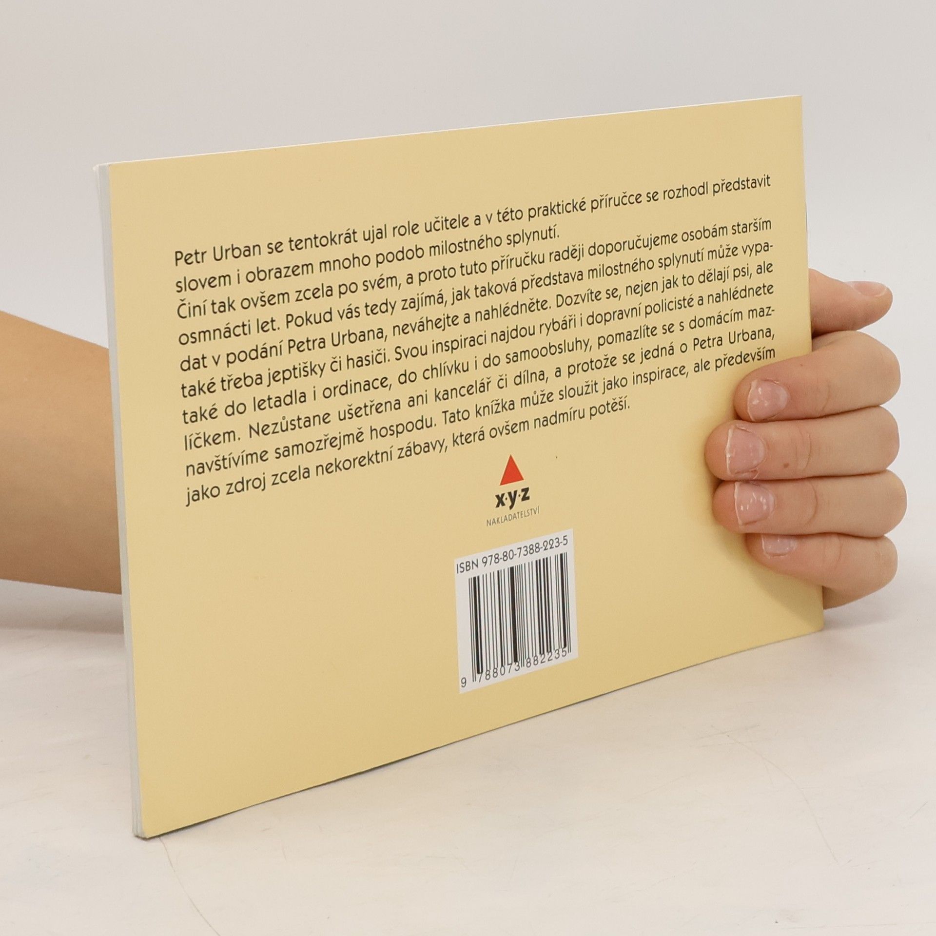 Tentokrát pro všechny čtenáře připravil Petr Urban velmi pikantní příručku, která nejenže skvěle baví, ale zcela jistě poslouží jako originální dárek pro ty, kteří se rádi červenají. Tentokrát se ujal role učitele a v této příručce se rozhodl představit slovem i obrazem mnoho podob milostného splynutí. Dozvíte se, nejen jak to dělají psi, ale také třeba jeptišky či hasiči. Svou inspiraci najdou rybáři i dopravní policisté a nahlédnete také do letadla i sauny, do chlívku i do samoobsluhy, pomazlíte se s domácím mazlíčkem. Nezůstane ušetřena ani kancelář či dílna, a protože se jedná o Petra Urbana, navštívíme samozřejmě hospodu. Autor přistupuje k danému tématu zcela po svém, a proto tuto příručku raději doporučujeme osobám starším osmnácti let.