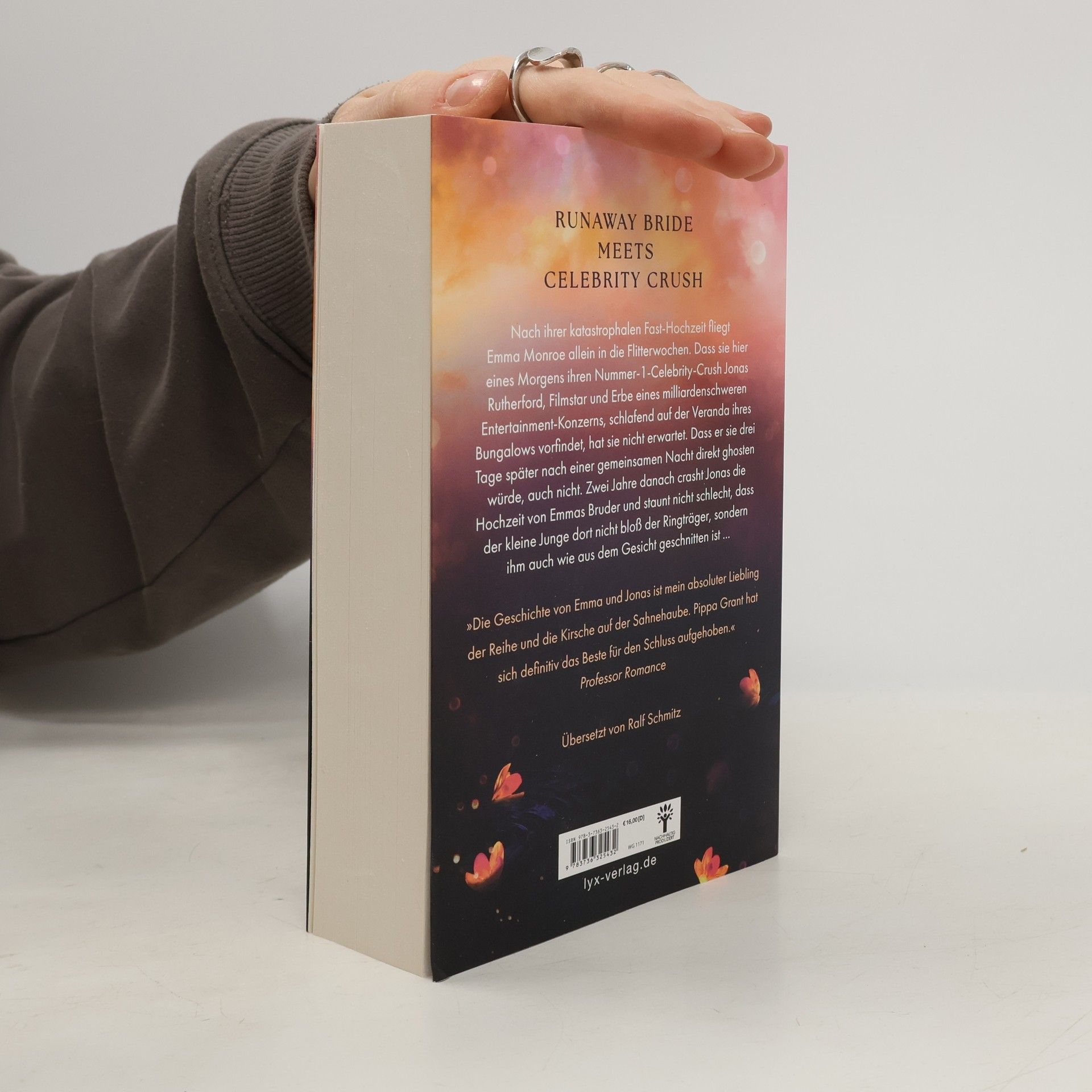 Runaway Bride meets Celebrity Crush Nach ihrer katastrophalen Fast-Hochzeit fliegt Emma Monroe allein in die Flitterwochen. Dass sie dort eines Nachts ihren Nummer-1-Celebrity-Crush Jonas Rutherford, Filmstar und Erbe eines milliardenschweren Entertainment-Konzerns, betrunken auf der Veranda ihres Bungalows vorfindet, hat sie nicht erwartet. Dass er sie nach ihrer gemeinsamen Nacht direkt ghosten würde, auch nicht. Drei Jahre später crasht Jonas die Hochzeit von Emmas Bruder und staunt nicht schlecht, dass der zweijährige Junge dort nicht bloß der Ringträger, sondern ihm auch wie aus dem Gesicht geschnitten ist ... »Die Geschichte von Emma und Jonas ist mein absoluter Liebling der Reihe und die Kirsche auf der Sahnehaube. Pippa Grant hat sich definitiv das Beste für den Schluss aufgehoben.« Professor Romance Band 3 der THREE-BFFS-AND-A-WEDDING-Reihe von USA-TODAY-Bestseller-Autorin Pippa Grant