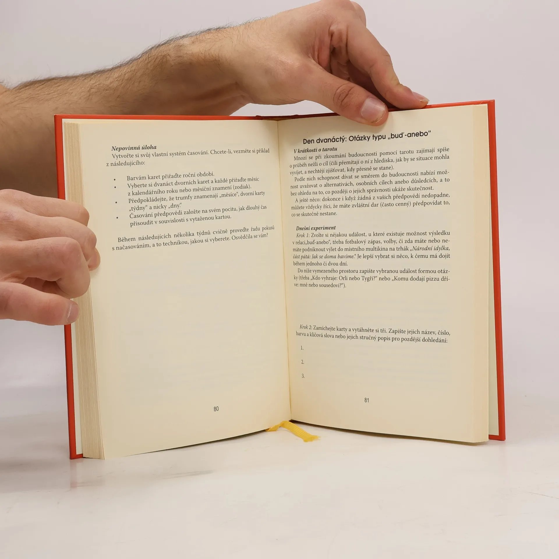 Ještě jste nikdy nevykládali tarot? Nejste přesvědčeni, že hromádka sedmdesáti osmi kousků papíru je schopná poskytnout vám odpovědi a rady? Přijměte tuto výzvu a objevte, jak vám tarot může posloužit. Tarot není jen prostředkem předpovídání budoucnosti. Kniha představuje soubor dovedností, které lze prakticky využít: cvičení zaměřená na věštění, meditaci, ukládání informací do paměti a řešení problémů. Na konci programu najdete přehled možností praktického využití, které vás zaujmou. Po absolvování cvičení začnete skutečně vykládat karty. Během pouhých patnácti minut denně se seznámíte s významy jednotlivých karet bez namáhavého memorování. Hravý přístup a osobní zkušenosti vám pomohou osvojit si vše kolem tarotu. Naučíte se přicházet na nápady pro tvůrčí psaní, lépe meditovat, vyvolávat zrakové představy a porozumět symbolice svých snů. Třicet rychlých a zábavných pokusů vám umožní poznat, jak tarot skutečně funguje. Potřebujete pouze tuto knihu, balíček tarotových karet a otevřenou mysl.
