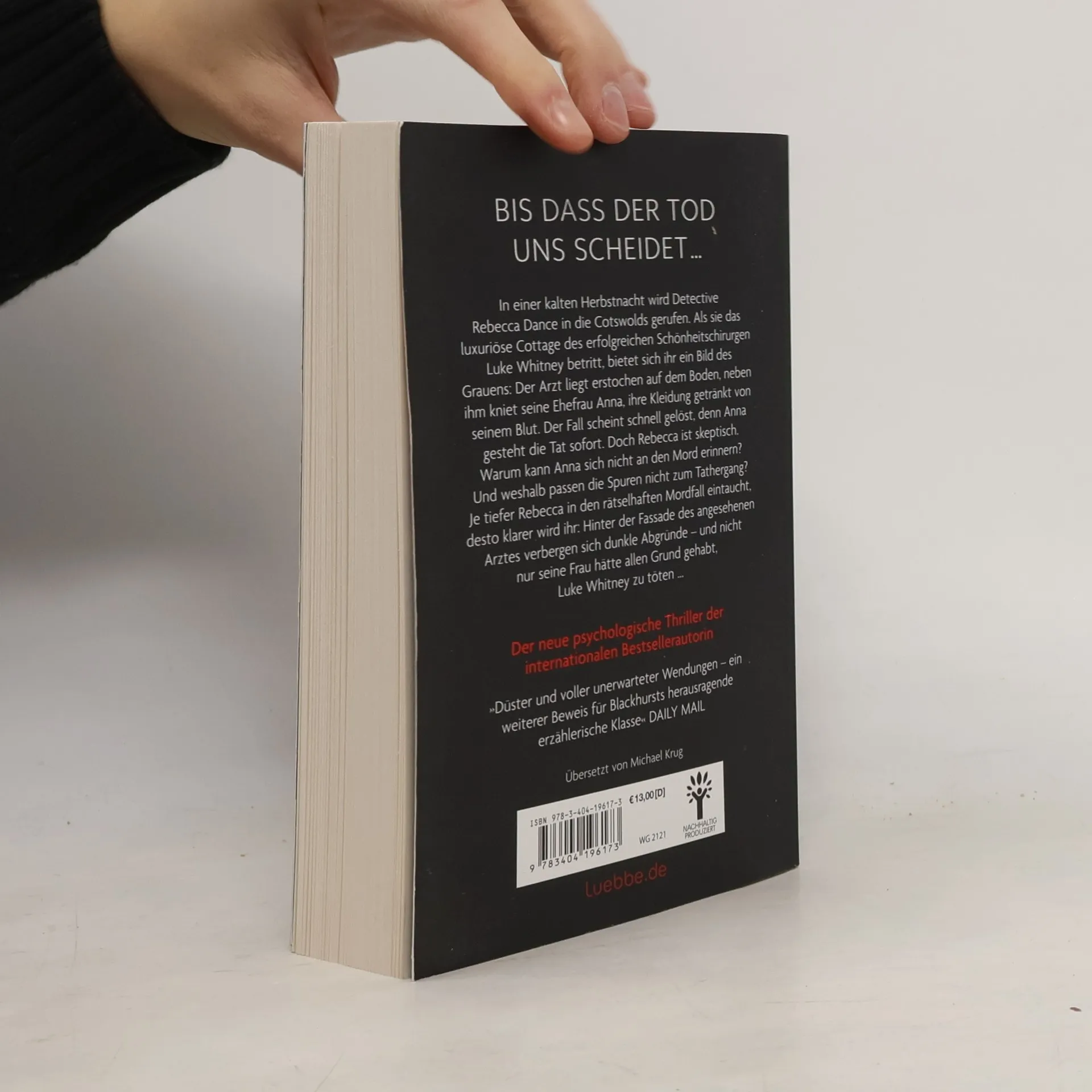 Eine kalte Herbstnacht in den Cotswolds. Als Detective Rebecca Dance das gepflegte Cottage des erfolgreichen Schönheitschirurgen Luke Whitney betritt, bietet sich ihr ein grauenvoller Anblick: Luke liegt erstochen am Boden, neben ihm kniet seine Ehefrau Anna, ihre Kleidung getränkt von seinem Blut. Der Fall scheint schnell gelöst, denn Anna gesteht die Tat sofort. Doch warum kann sie sich dann an kein Detail des Mordes erinnern? Je mehr Rebecca über das Opfer herausfindet, desto klarer wird ihr: Hinter der Kulisse dieser allzu perfekten Ehe verbergen sich dunkle Abgründe - und mehr als eine Frau hätte einen Grund gehabt, Luke Whitney zu töten ...