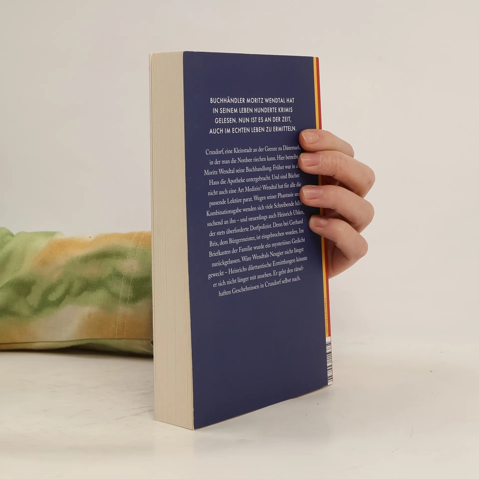 Cruxdorf, eine Kleinstadt an der Grenze zu Dänemark, in der man die Nordsee riechen kann. Hier betreibt Moritz Wendtal seine Buchhandlung. Früher war in dem Haus die Apotheke untergebracht. Und sind Bücher nicht auch eine Art Medizin? Wendtal hat für alle die passende Lektüre parat. Wegen seiner Phantasie und Kombinationsgabe wenden sich viele Schreibende hilfesuchend an ihn – und neuerdings auch Heinrich Uhlen, der stets überforderte Dorfpolizist. Denn bei Gerhard Brix, dem Bürgermeister, ist eingebrochen worden. Gestohlen wurde nichts, aber das Wohnzimmer verwüstet, und am Schrank hängt, wie eine blutige Drohung, eine Konserve Tomatensaft, aufgespießt mit einem Jagdmesser. Und was hat es mit dem mysteriösen Gedicht im Briefkasten der Familie auf sich? Wäre Wendtals Neugier nicht längst geweckt – Heinrichs dilettantische Ermittlungen könnte er sich nicht länger mit ansehen. Er geht den rätselhaften Geschehnissen in Cruxdorf selbst nach.