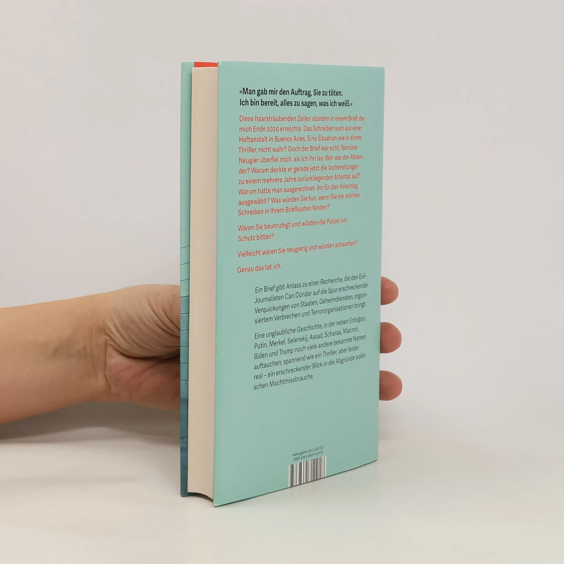 Ein Brief erreicht den Exil-Journalisten Can Dündar. Der Absender: Serkan Kurtuluş, ein türkischer Häftling in einem Gefängnis in Buenos Aires. Er gibt sich als jemand zu erkennen, der den Auftrag erhielt, ihn zu ermorden – und verspricht ihm brisante Informationen. Der Hintergrund: Mit einem Artikel über geheime Waffenlieferungen der Türkei an eine verbotene syrische Islamistenorganisation machte sich Can Dündar Staatspräsident Erdoğan zum Feind. Er wurde zu 27 Jahren Haft verurteilt – und es wurde ein Attentat auf ihn verübt, direkt vor dem Gerichtsgebäude. Dündar besucht den Mann, der ihn ermorden sollte, im Gefängnis. Dieser wiederum fürchtet wegen drohender Abschiebung in die Türkei jetzt selbst um sein Leben. Durch ihn und bei weiteren Recherchen stößt er auf ein Netzwerk von geheimen Deals zwischen demokratischen und autokratischen Regierungen und deren Verbindungen zum organisierten Verbrechen und zu Terrororganisationen. Eine unglaubliche Geschichte, spannend wie ein Thriller, aber leider real – ein erschreckender Blick in die Abgründe politischen Machtmissbrauchs.